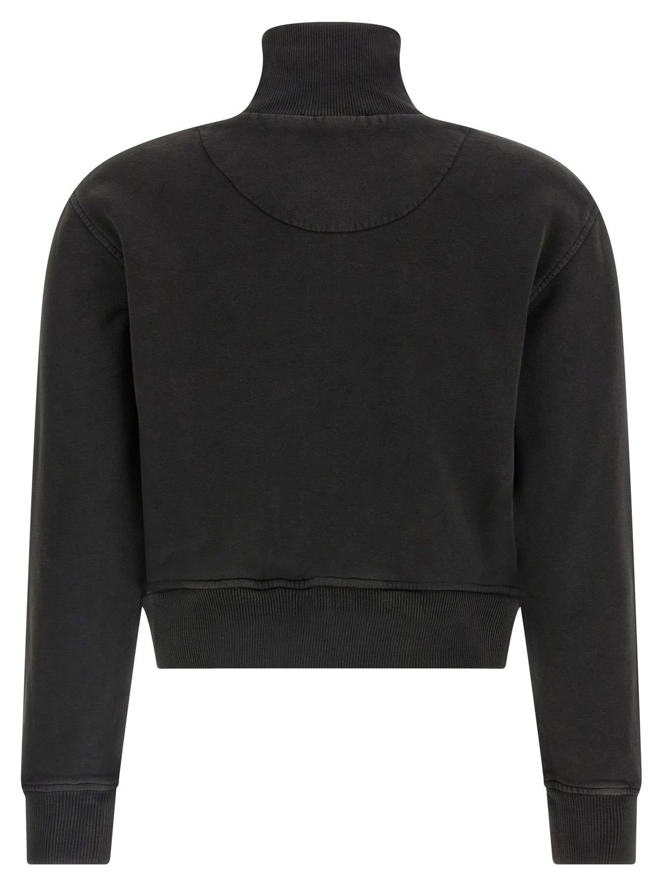 American fleece mélange sweatshirt with front 3D logo, ribbed high neck, crop style, front zip closure, long cuffed sleeves.