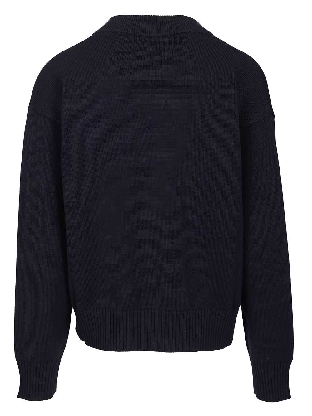 Ami de Coeur wool and cotton knit cardigan with Ami horn buttons on the placket and Ami de Cœur logo inlaid on the chest