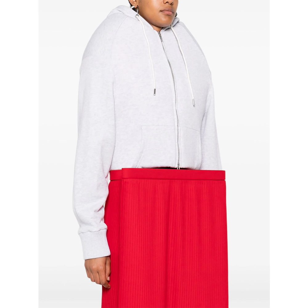 grey hooded neck zip fastening long sleeves ribbed cuffs kangaroo pocket