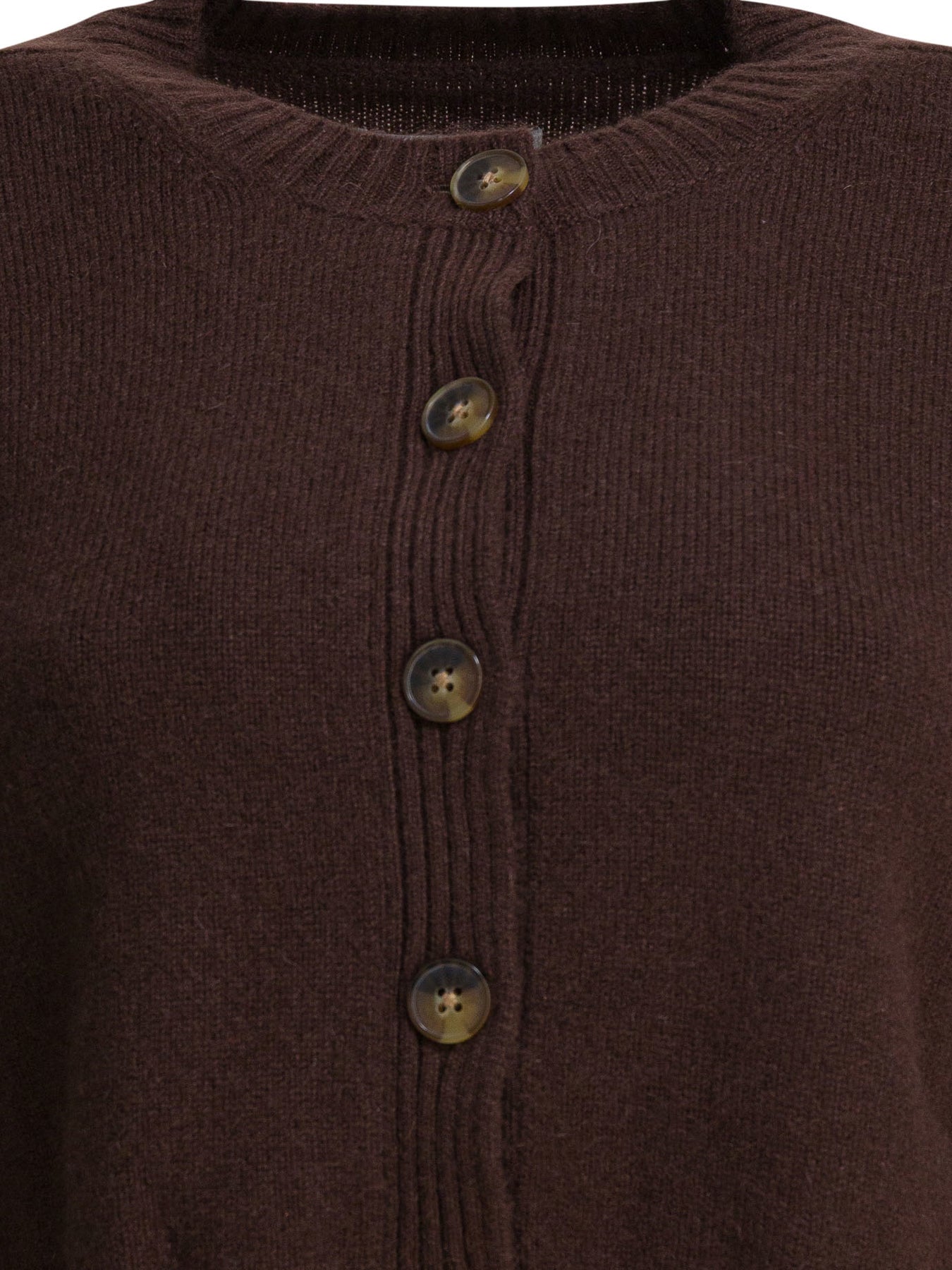 LouLou De Saison "Zephir" cardigan made of cashmere with fine knit construction. Short, fitted silhouette contrasted with long sleeves. Front closure with five applied buttons. Collar, hem, and cuffs finished with rib knitting to support the structure. Careful technical details at the edges and attention to functional elements typical of contemporary knitwear. || - Solid color - Long sleeves - Fine cashmere knit - Five-button front closure - Ribbed crew neck, cuffs and hemline - Short, fitted silhouette - Clean finish in the edges - Cropped fit