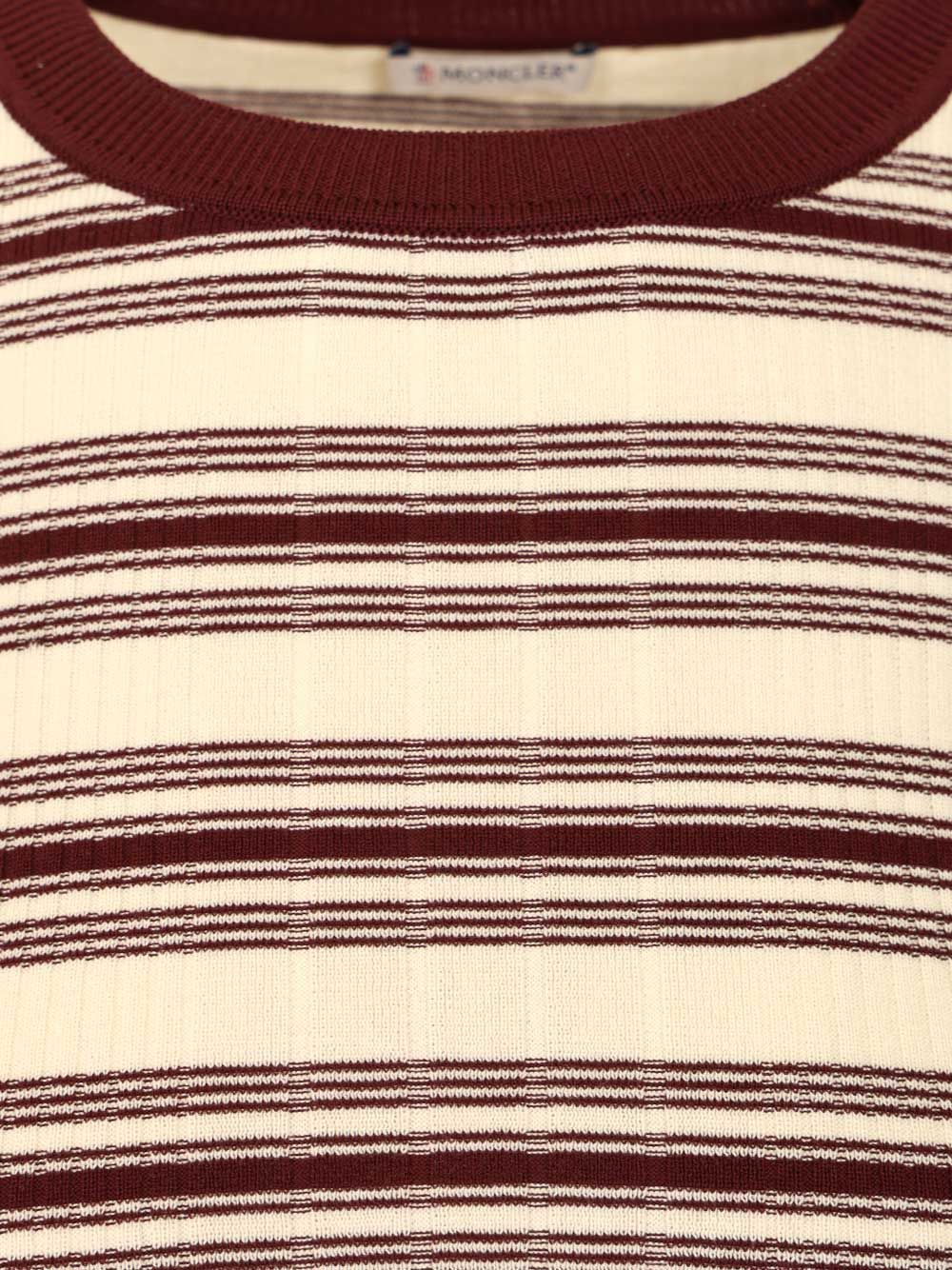 Cotton knitted T-shirt by Moncler, striped pattern, short sleeves, crew neck and ribbed hems.