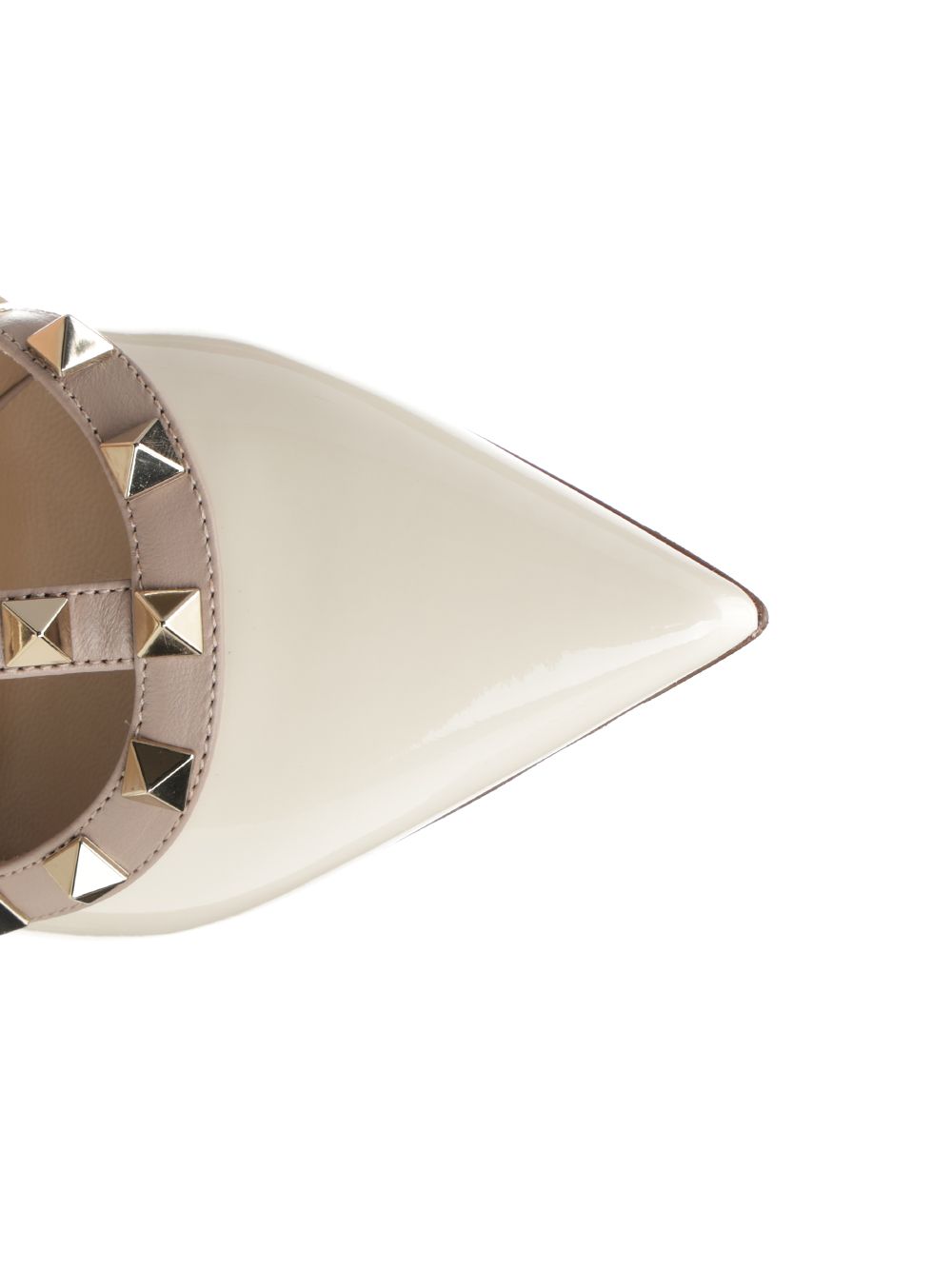 "Rockstud" pumps in ivory and beige nappa with studded straps and leather-covered heel by Valentino Garavani.