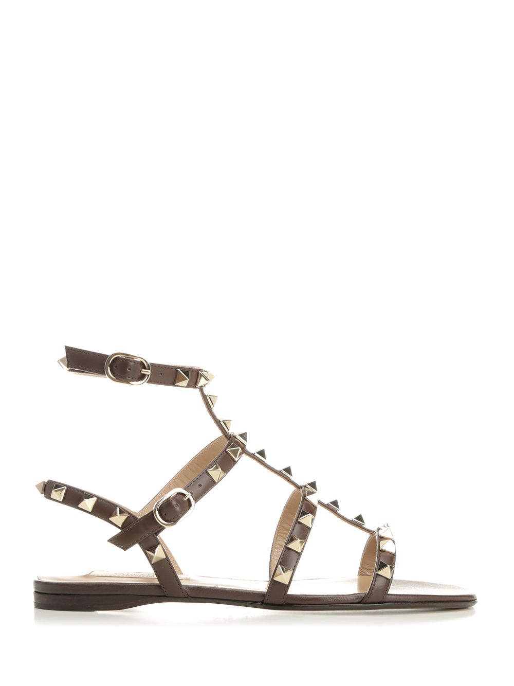 Rockstud low sandal in leather with platinum-finish studs. Adjustable contrasting nappa straps.