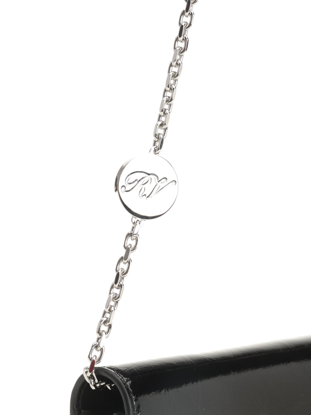 "Belle Vivier" patent leather wallet by Roger Vivier, featuring a chain and iconic metal buckle, a flap and snap button fastening, 1 zipped coin pocket, 1 flat pocket and 6 card slots