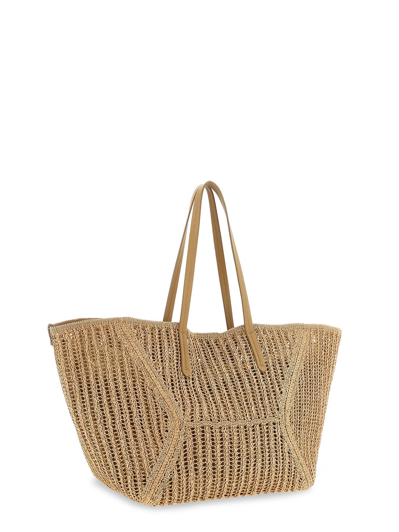Double leather handle Magnetic button closure Maxi fabric pouch inside Made in Italy Rafia/Leather W: 30 cm, H: 30 cm, D: 21 cm SKU: MB97D2571C802