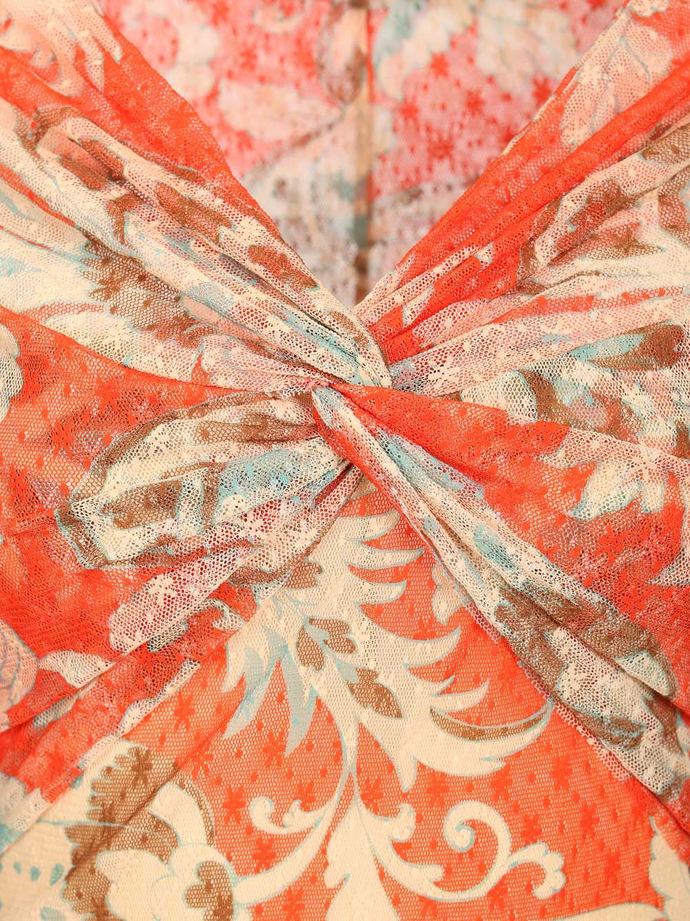 long dress is crafted with a flowing silhouette with a bardot neckline and the printed fabric features a slightly openwork finish.