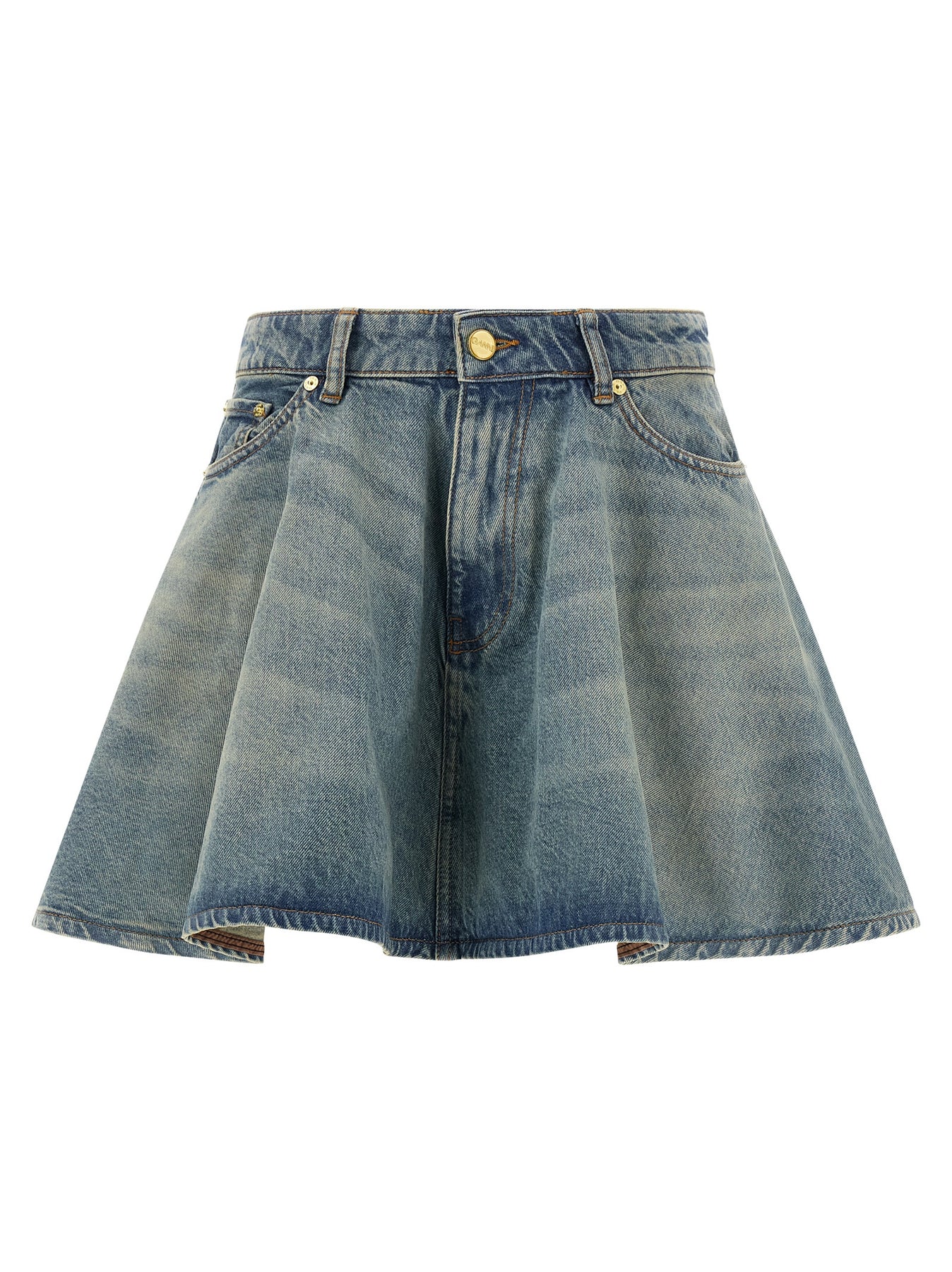 Mini 'Tint Rigid Denim' skirt in stonewashed cotton denim with contrast stitching, flared silhouette, front zip and button closure, five pockets, back logo tag. SUSTAINABLE: This product is made of organic cotton.