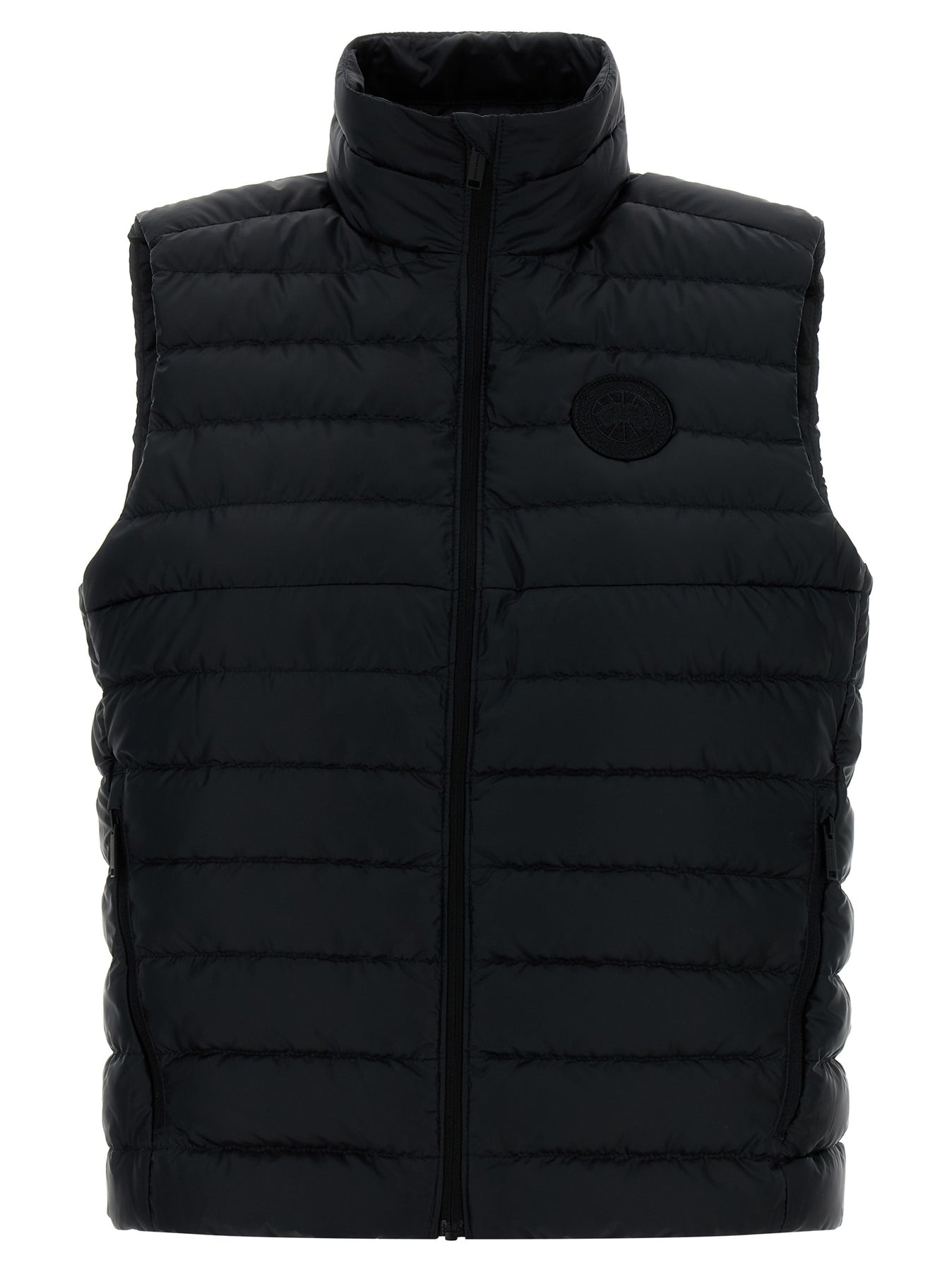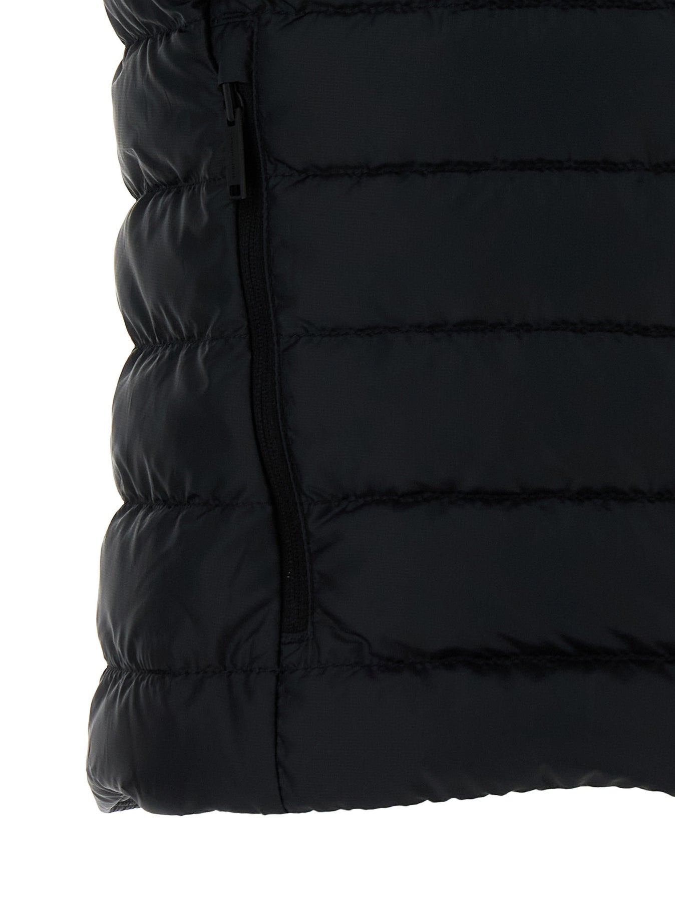 'Aethera' vest in quilted technical fabric slightly padded with duck feather, tone-on-tone logo patch and front zip closure, standing collar, pockets, drawstring on the hem. SUSTAINABLE: Product made with recycled materials.