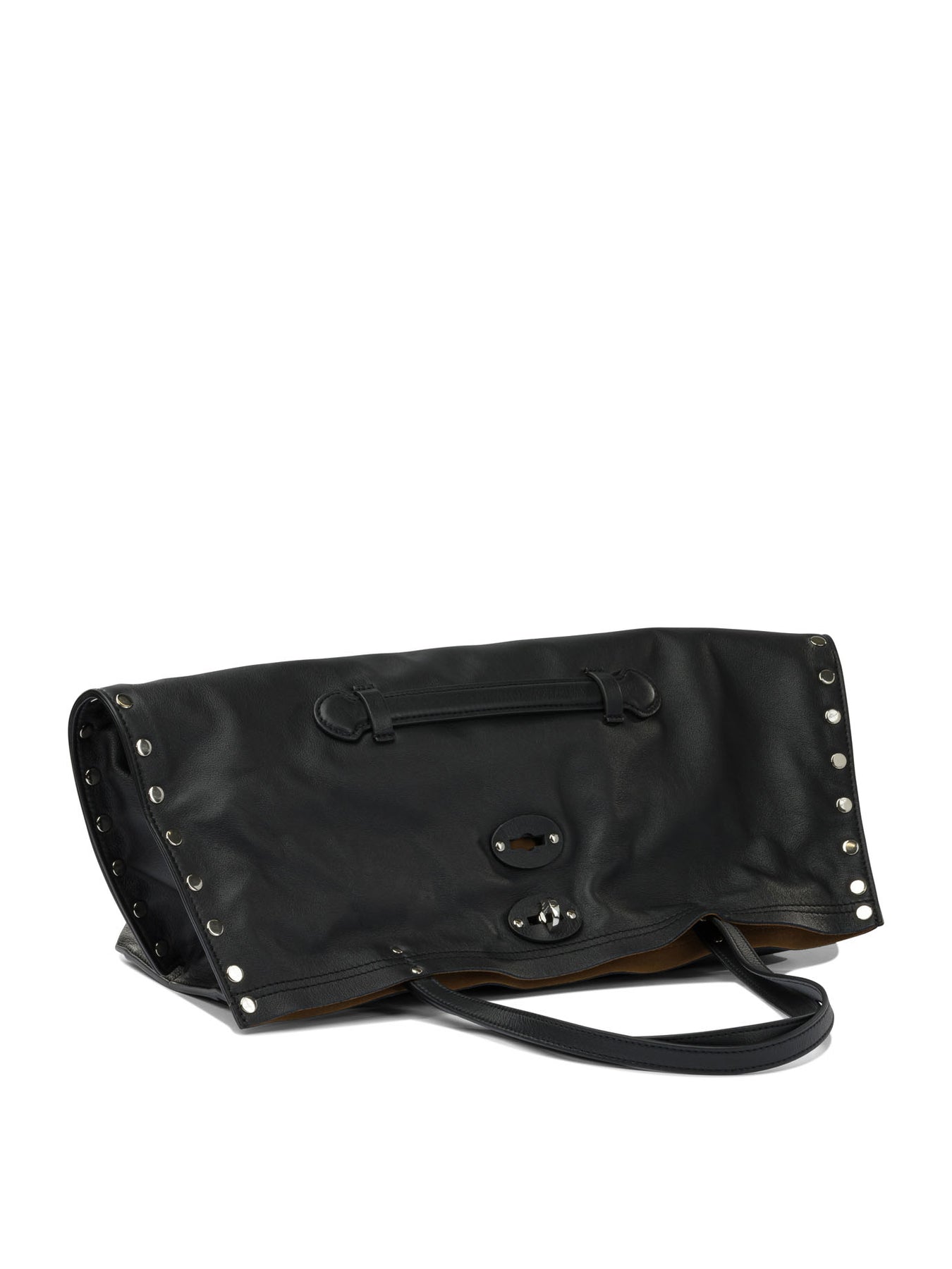 Zanellato "A'Spasso" shoulder bag made of plongé nappa leather treated with linen oils. The structure of the tote bag allows it to be carried either on the shoulder or folded in the hand, adapting shape and capacity according to use. The design draws soft lines and an essential silhouette, while functional details encourage a quick transformation from a walking bag to a more compact model. || - Plongé nappa leather with linen oil treatment - Can be used on the shoulder or folded by hand - Convertible structure to increase capacity - Functional details for portability - Visible contrasting closures and stitching - Interior fabric lining - Suitable for daily use in an urban setting