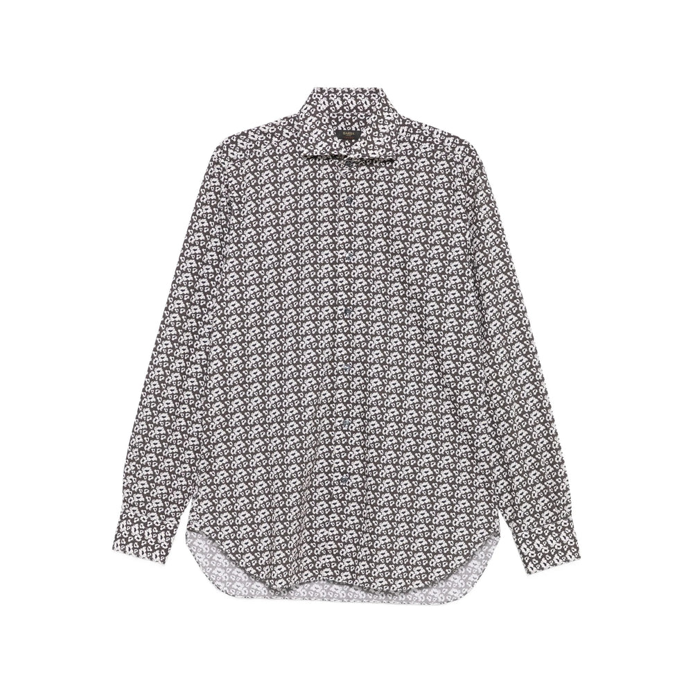 black/white all-over floral print front button fastening long sleeves buttoned cuffs