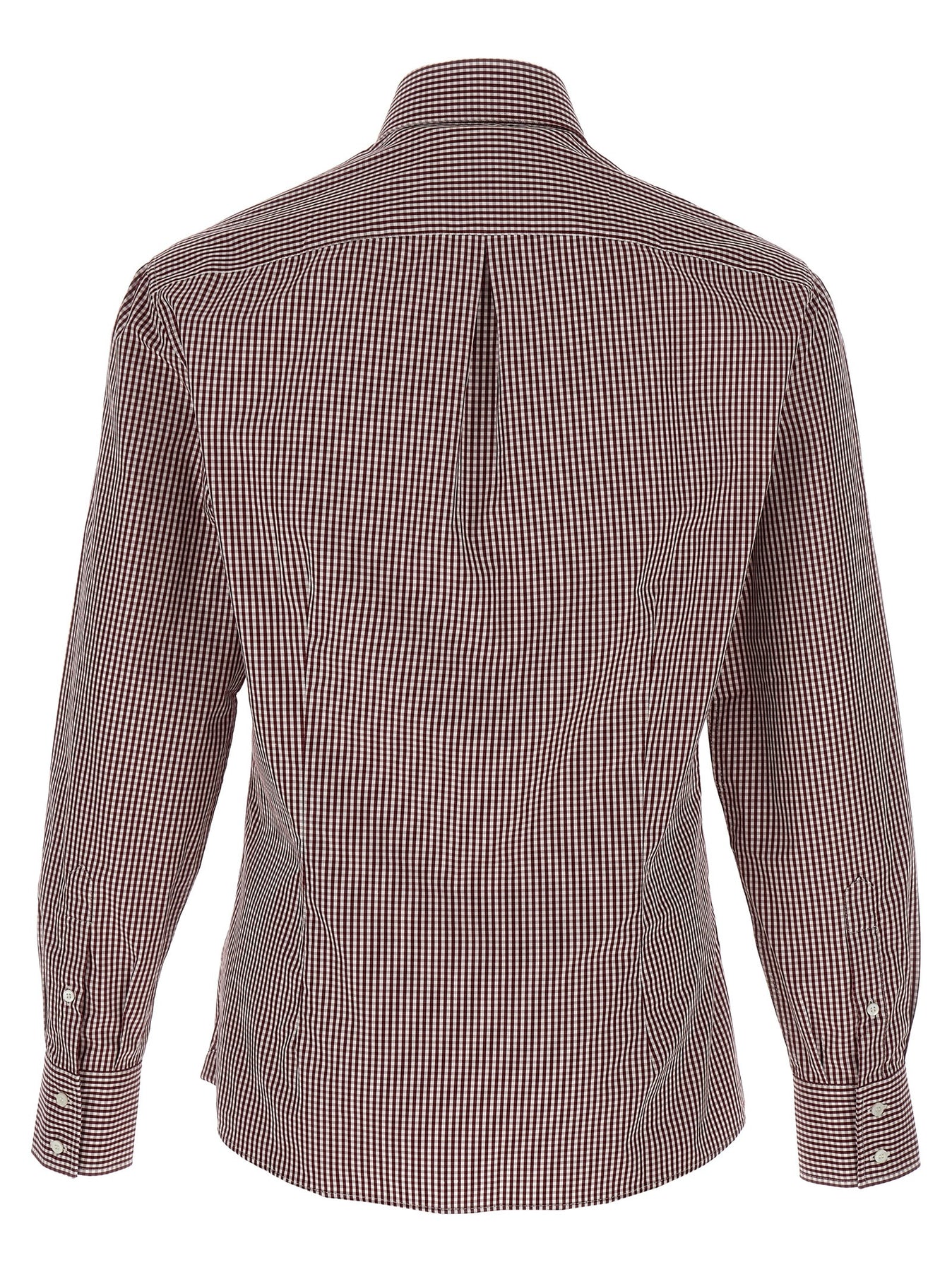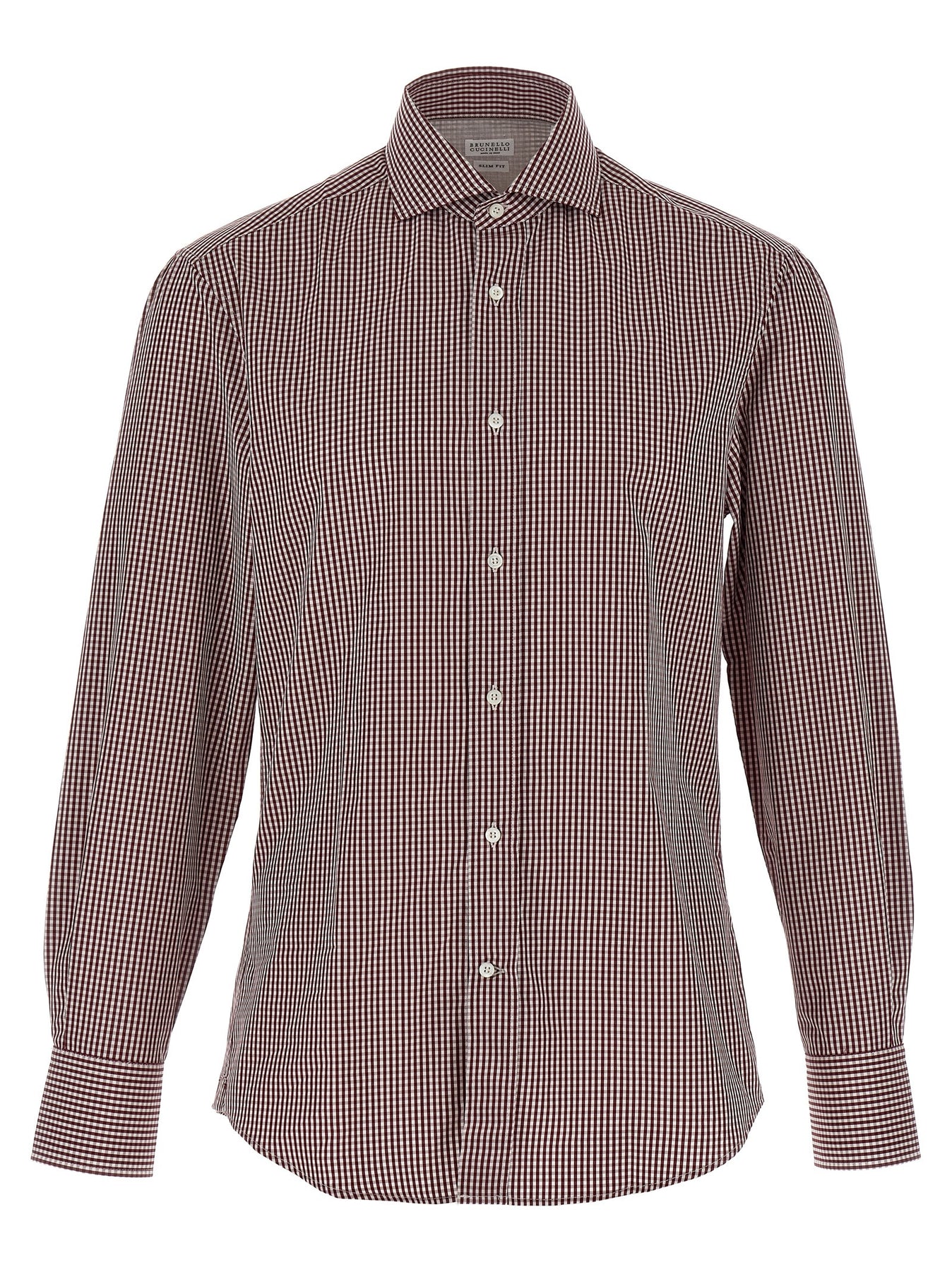 Pure cotton check shirt with French collar, front button closure, long cuffed sleeves.