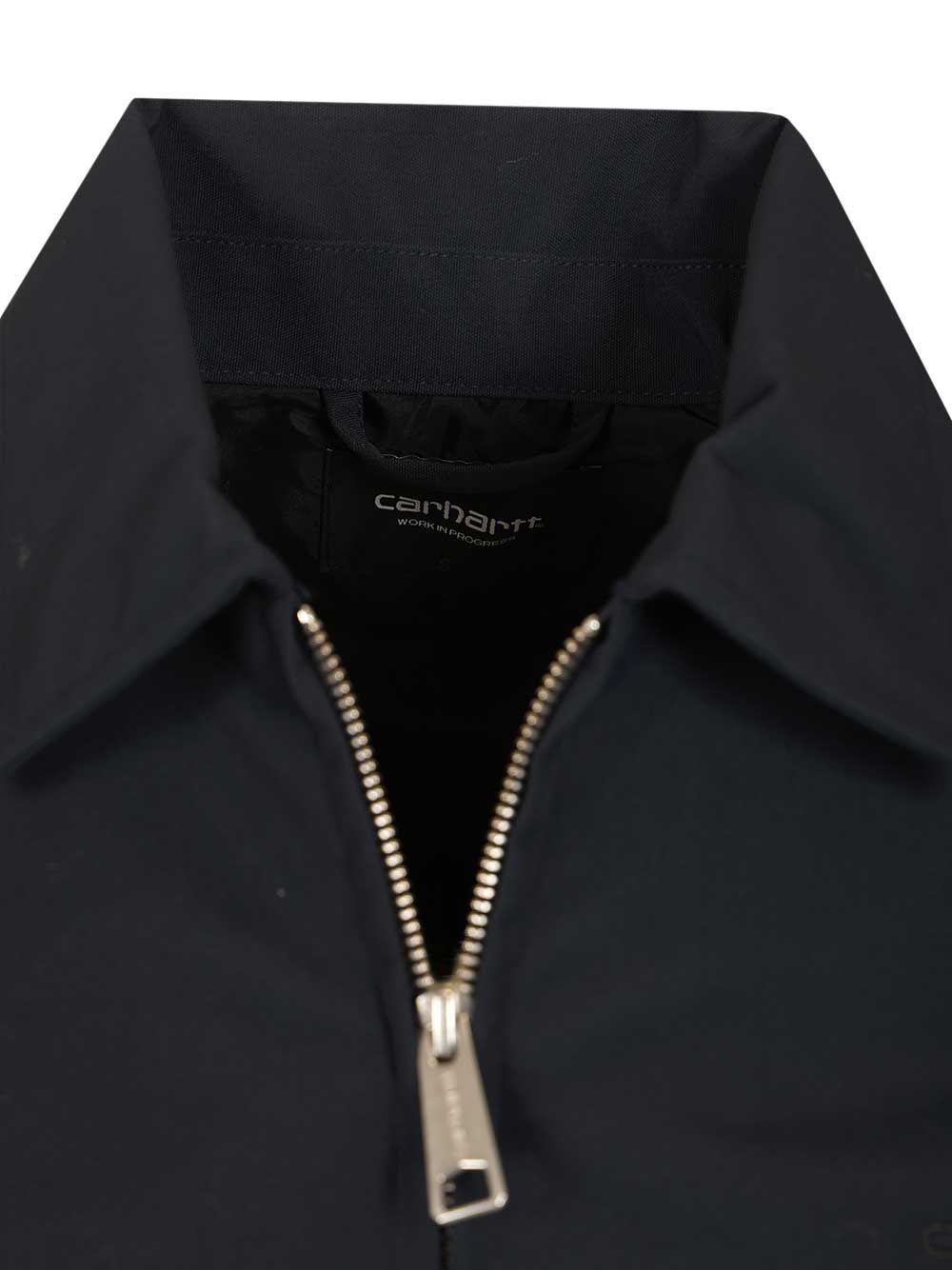 The Neven Jacket is made of medium-weight lined nylon canvas with a front zip closure. It features two front welt pockets. An embroidered logo finishes the look.