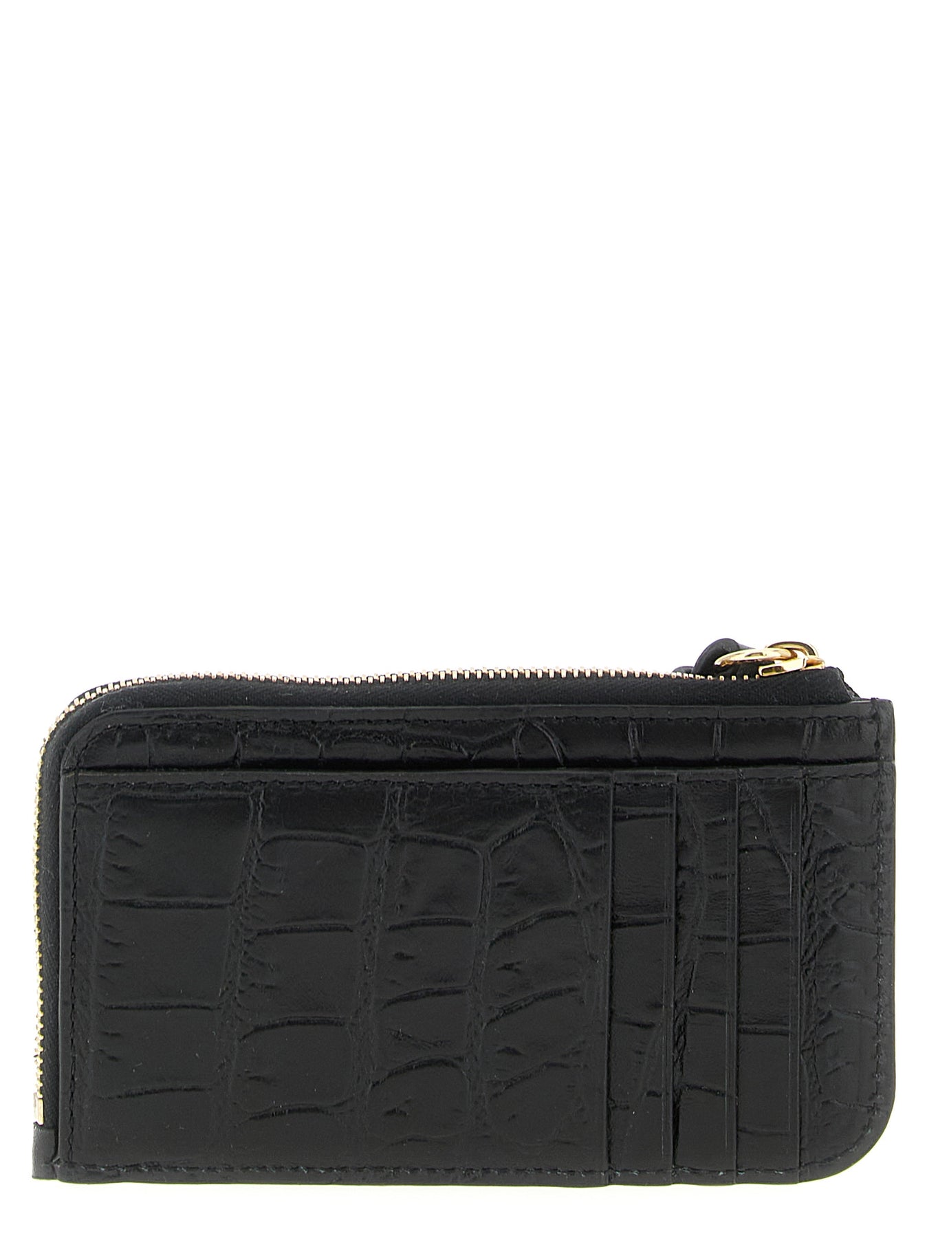 'Alphabet' crocodile-effect leather card holder with front embossed logo, top zip closure with knotted leather zip puller and Horse medals with Gold initials.