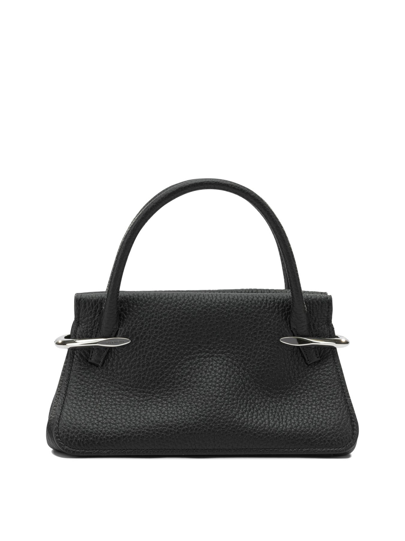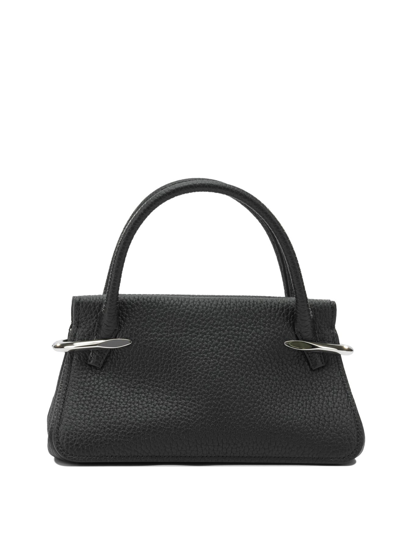 Givenchy "Pinch" handbag made of grain calfskin leather with compact construction and structured silhouette. Magnetic closure provides direct access to the main compartment. Leather handles and non-adjustable shoulder strap with Givenchy embossing, gold-tone metal grippers and logo engraving, contrasting hand-finished edges. The interior lining is nappa leather and bears the Givenchy Paris signature. || - Grain calfskin leather - Magnetic closure - Leather handles - Non-adjustable shoulder strap with Givenchy embossing - Metal clamps with gold finish and Givenchy engraving - Nappa leather lining - Contrasting handmade edges - One main compartment - Givenchy Paris signature on the inside