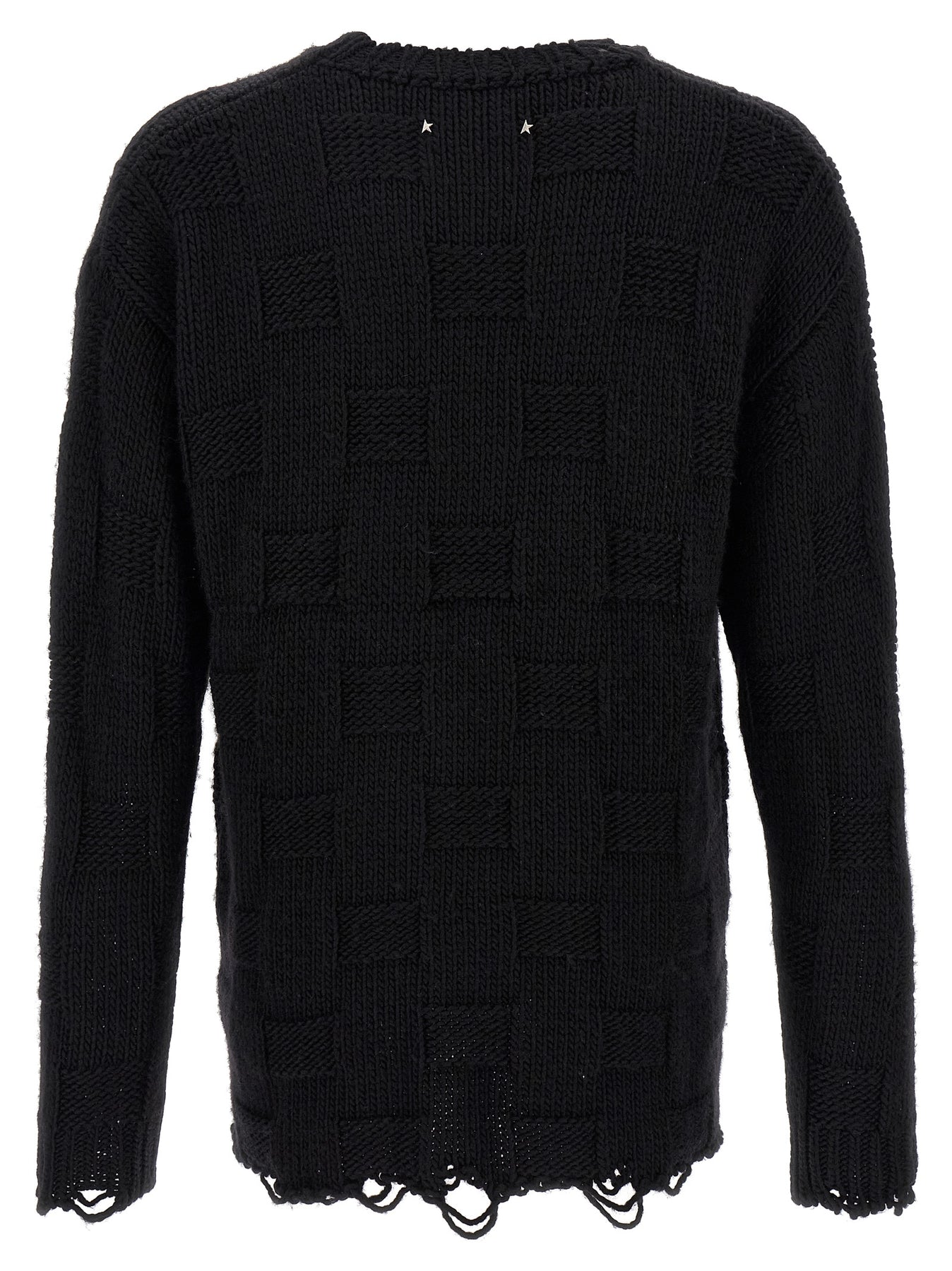 'Journey' wool sweater with 3D effect, crew neck, long sleeves, destroyed effect on the hem and cuffs.