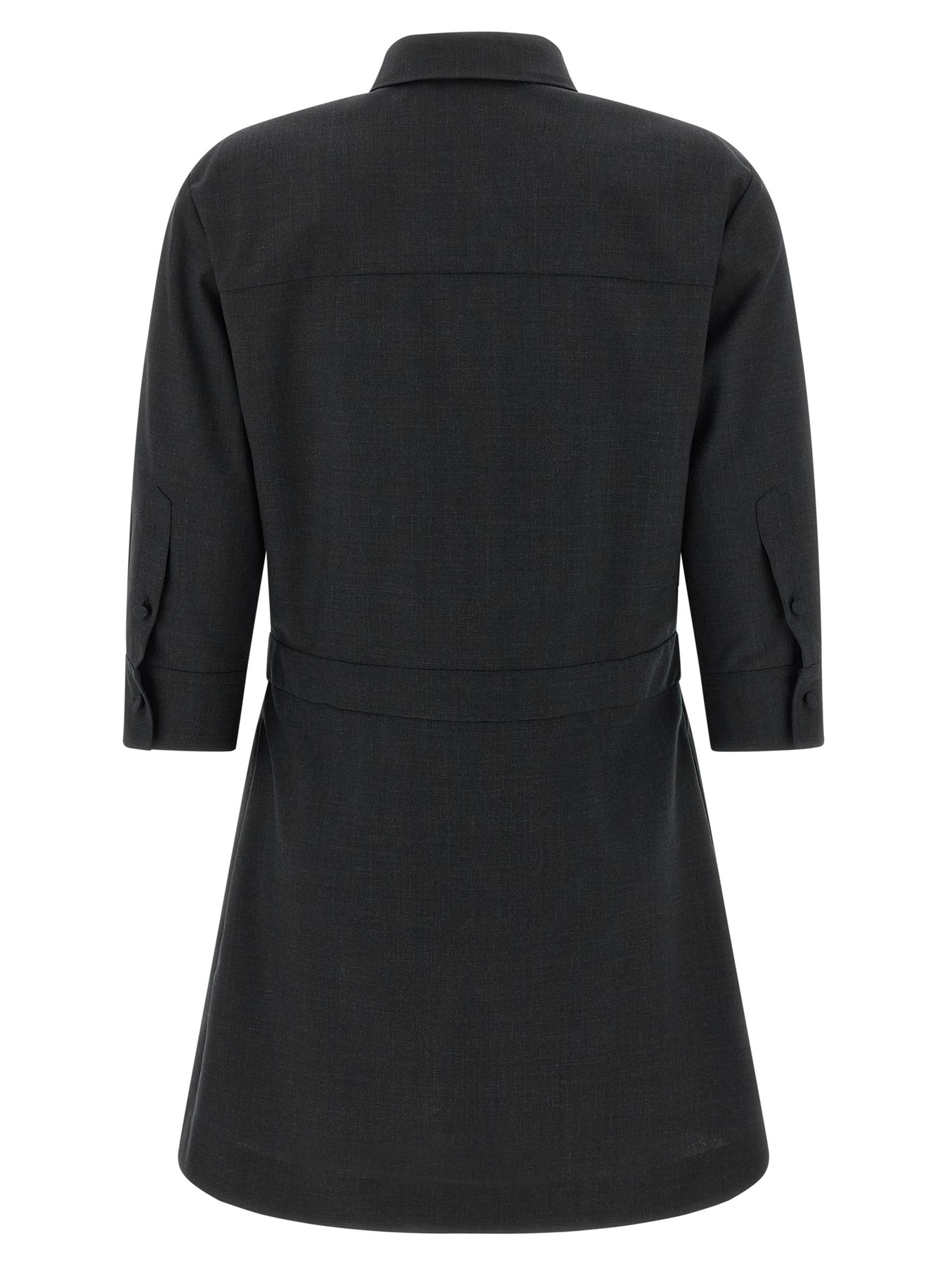 Mini wool dress, shirt model with metal 'Morsetto' detail on the front, button closure, skirt with inverted pleat, 3/4 sleeves with cuffs.