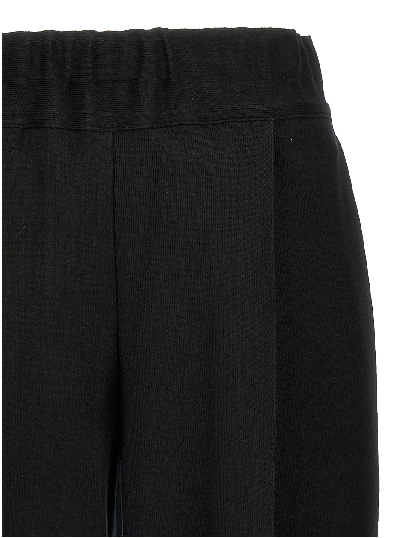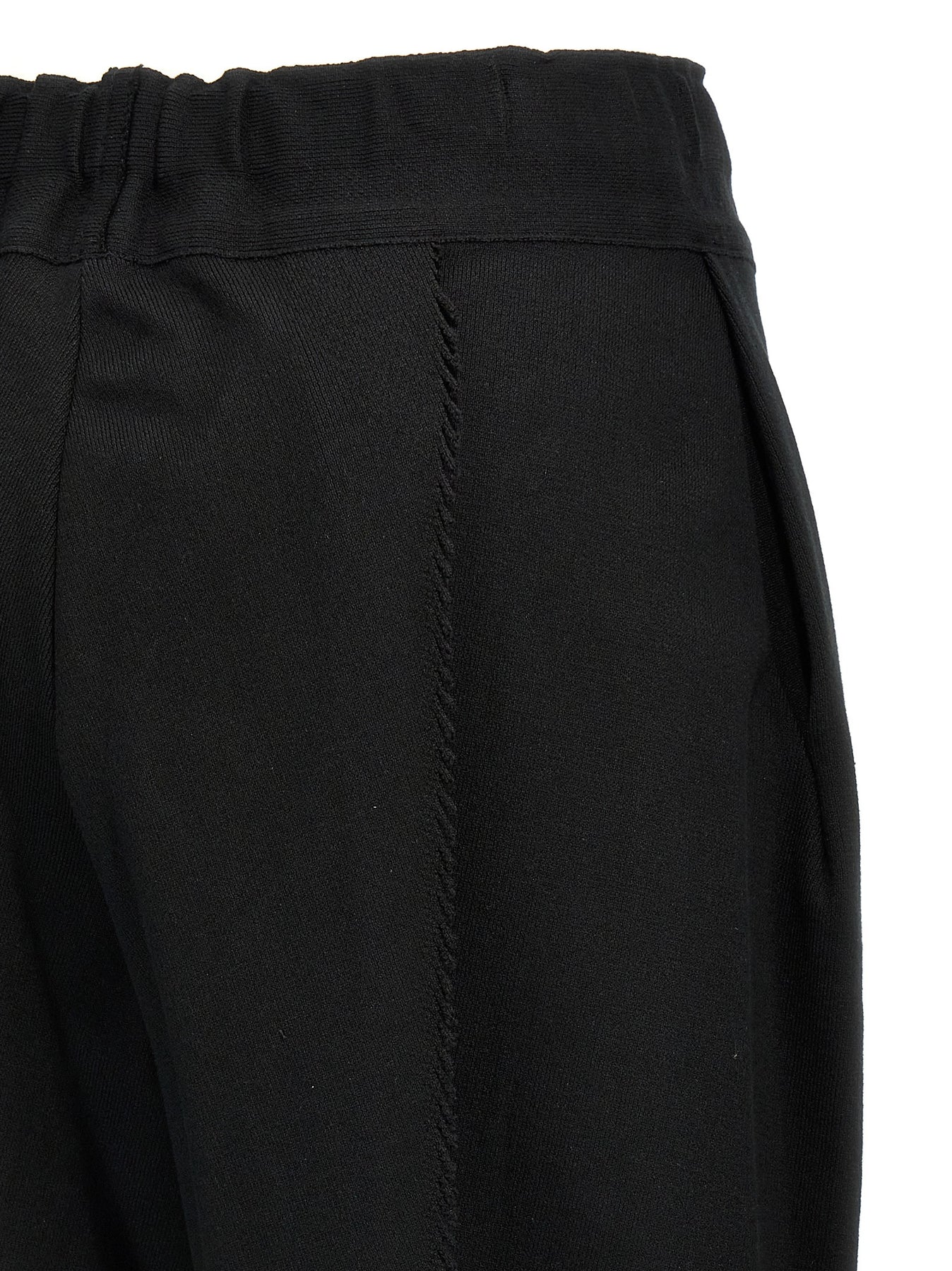 'Champagne' stretch cotton blend pants, fringed front and back pleats, balloon leg, elastic waistband, pockets, raw cut hem.