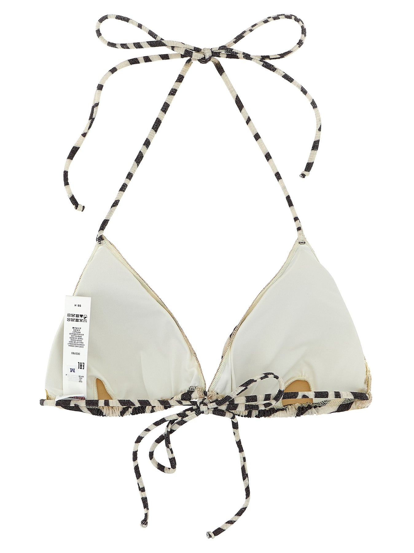 'Leah' triangle bikini top in stretch lurex fabric with animal print, removable cups, adjustable laces closure.