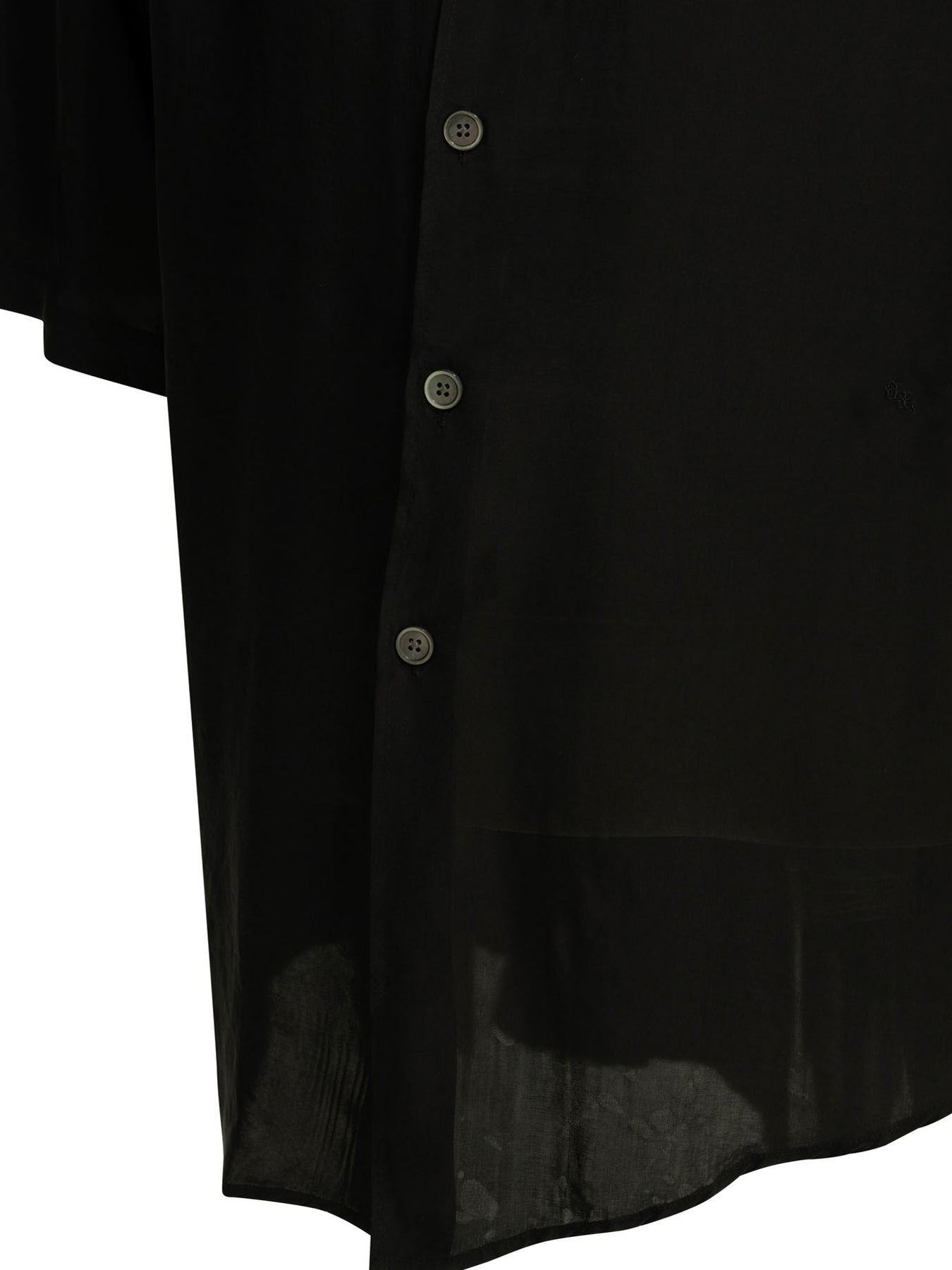 Our Legacy "Beyond Shirt" casual shirt. The garment features a 100% Japanese cupro fabric construction with a pigment-dyed finish. The construction features a straight body and a straight silhouette. The shirt is distinguished by full-length mother-of-pearl buttons on the front. The curved hemline offers a sharp cut, accompanied by a regular fit and short sleeves. || - Solid color - Classic collar - Short sleeves - Japanese fabric - Pigment dyed finish - Mother-of-pearl buttons - Curved hem - Straight body - Regular fit