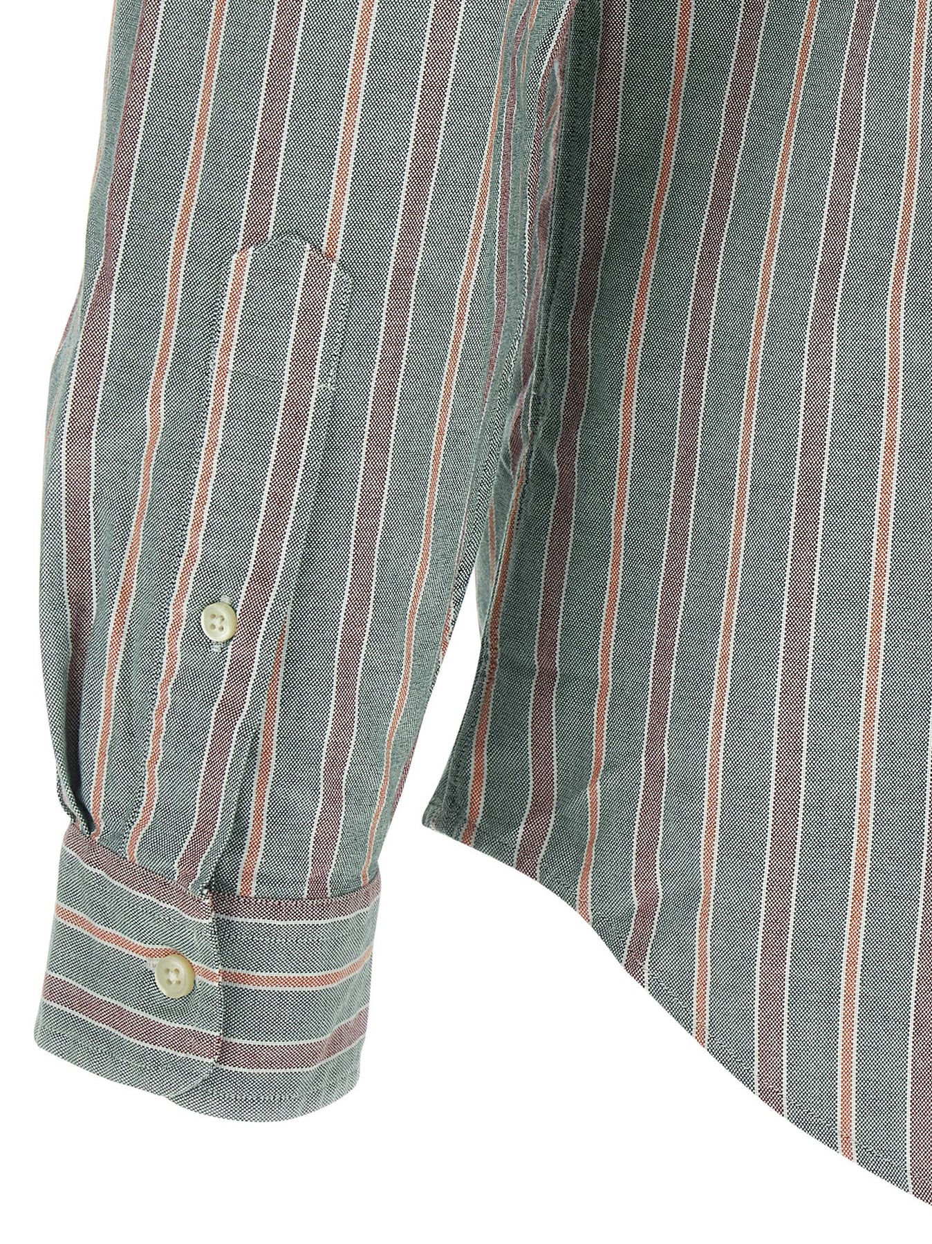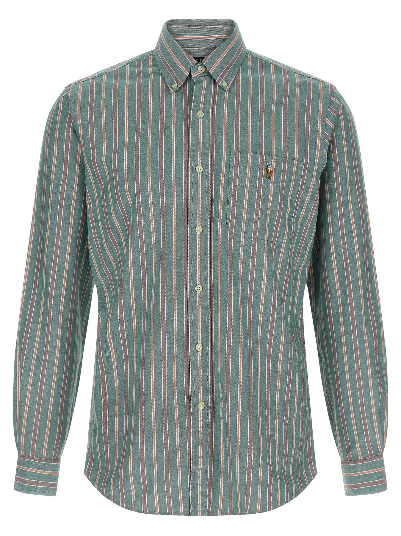 Oxford striped cotton shirt, button-down model, pocket with embroidered logo, front button closure, long cuffed sleeves.