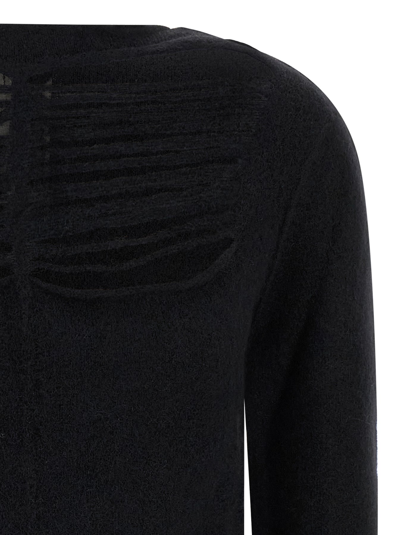 'LS Top' wool sweater with boat neck, front cut-out details, long sleeves.