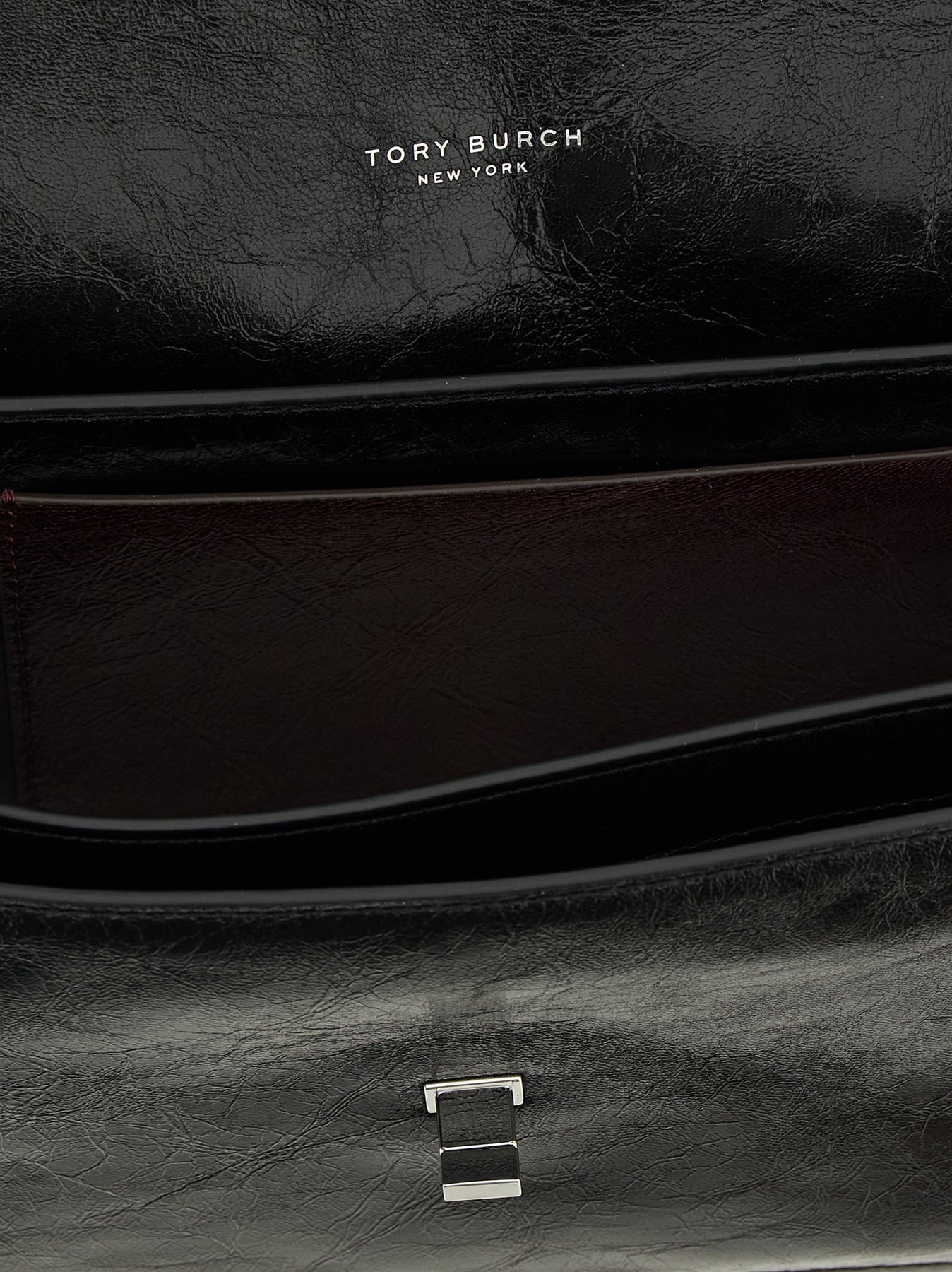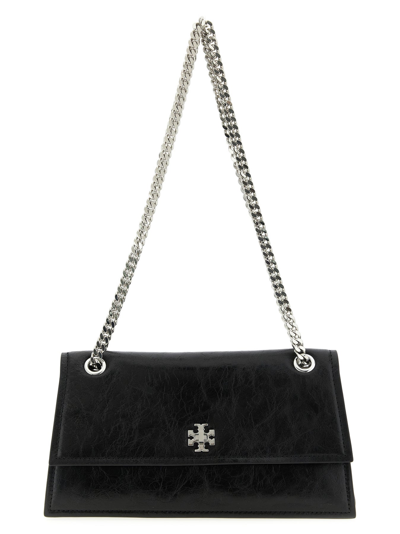 'Kira turnlock' shoulder bag in shiny effect leather, flap closure with snap system, front metal logo, sliding chain shoulder strap.