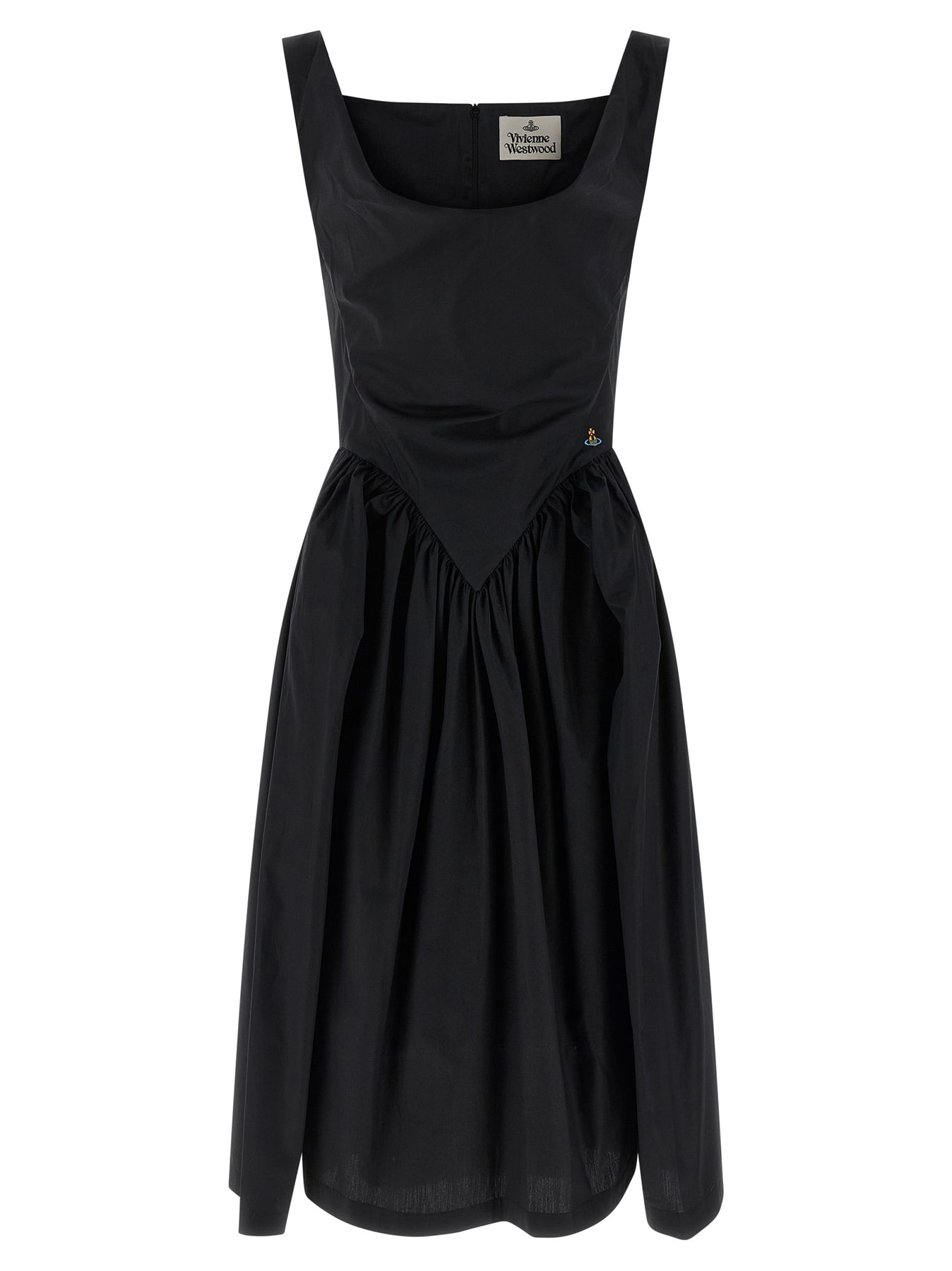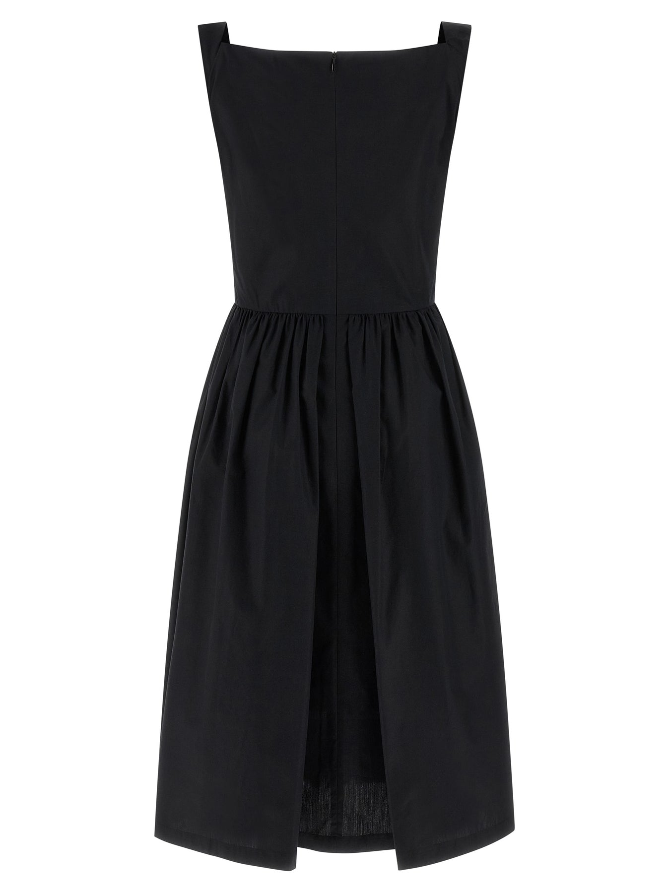 'Sunday' off-the-shoulder cotton dress with shoulder straps, back zip closure, front logo embroidery, wide skirt.
