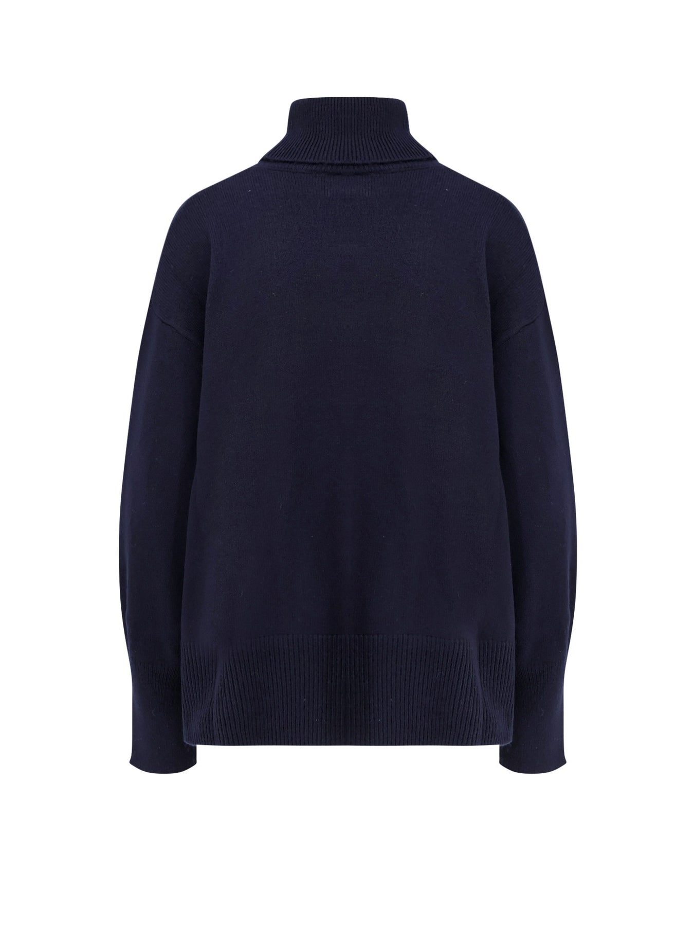 Logo embroidery on the collar Long sleeves with maxi cuffs Asymmetrical hem Side slits 50% polyamide 50% wool SKU: A3324001NAVY