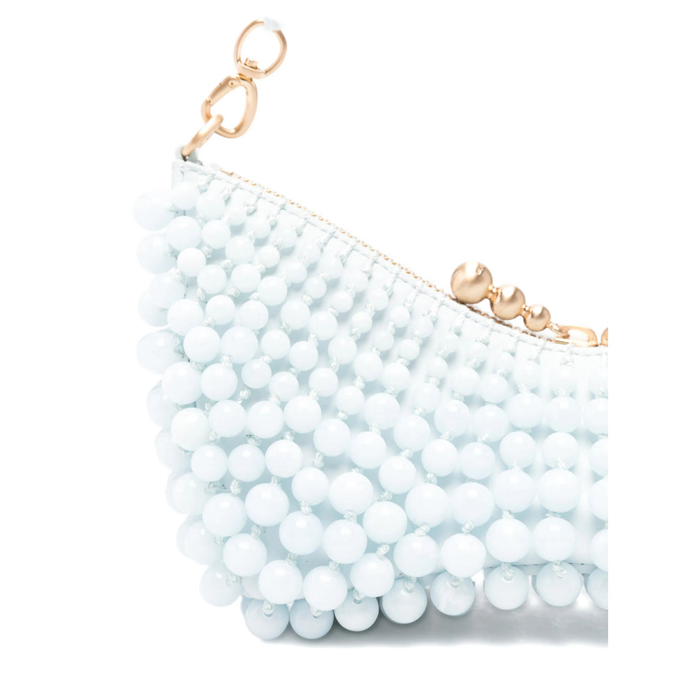 light blue beaded embellishment gold-tone hardware top handle zip fastening This piece comes complete with a protective dust bag.