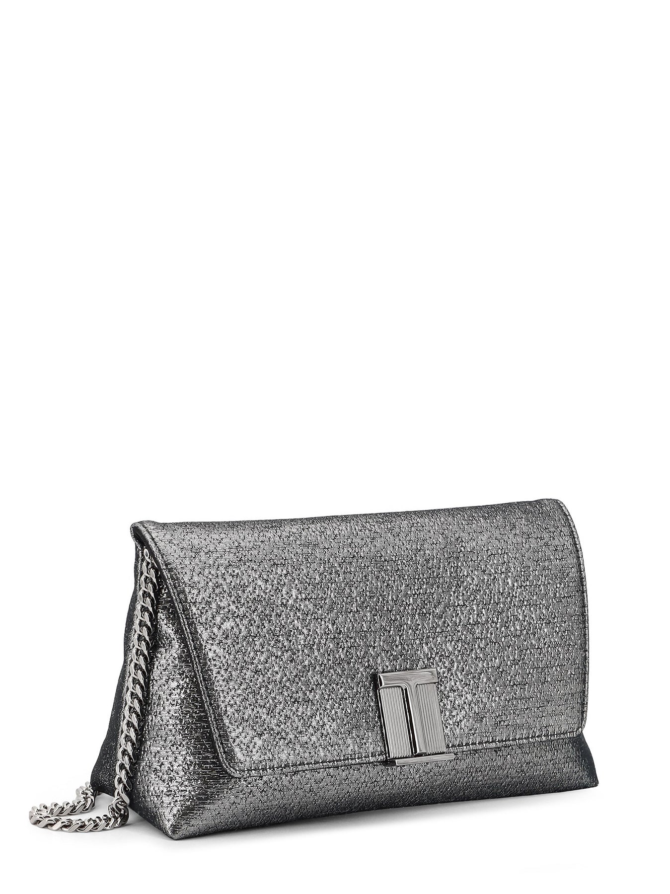 Closure with button and plaque with logo Removable chain shoulder strap Single compartment Made in Italy 58% cotton 11% wool 16% acrylic 15% polyester Lining: 58% viscose 32% silk 10% leather W: 19 cm x H: 11.5 cm x D: 7 cm SKU: L1886TSY054A1G001