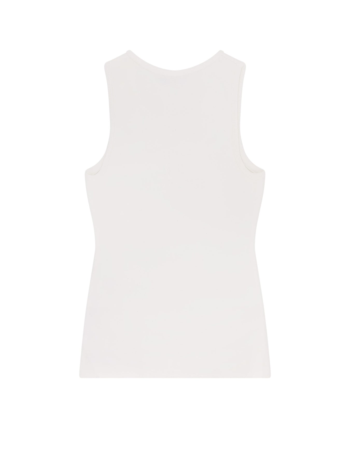 Sleeveless and round neckline Logo embroidery on the front Fitted Made in Italy 84% viscose 16% polyester SKU: 835500T52319040