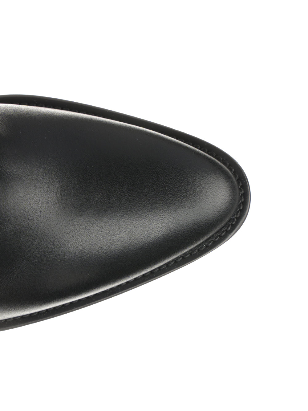 over-the-knee boots with a square toe and block heel, featuring a SAINT LAURENT engraved buckle and a rear thigh slit.