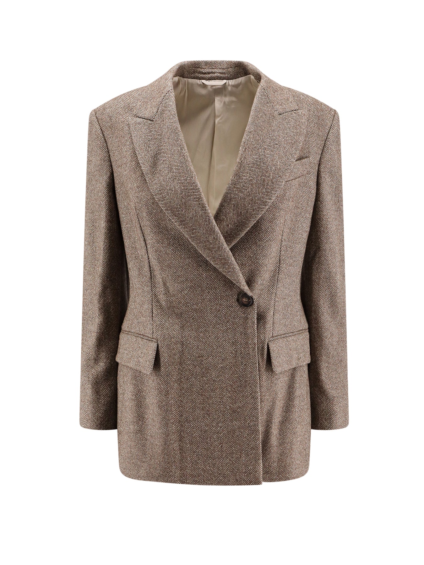SKU: MB1317163_C001 - Double-breasted with buttons peak lapel shoulder pads detail made in italy 51% virgin wool 36% wool 12% polyamide 1% elastan