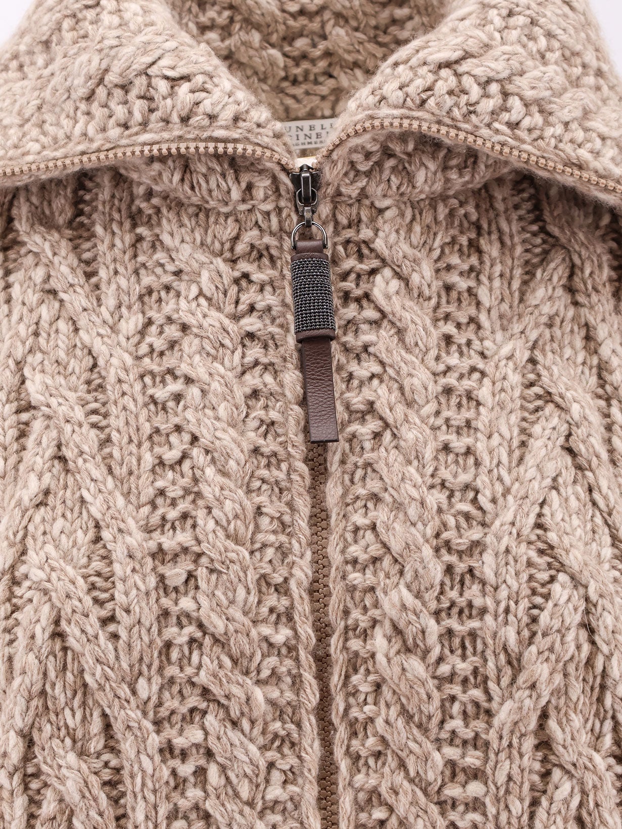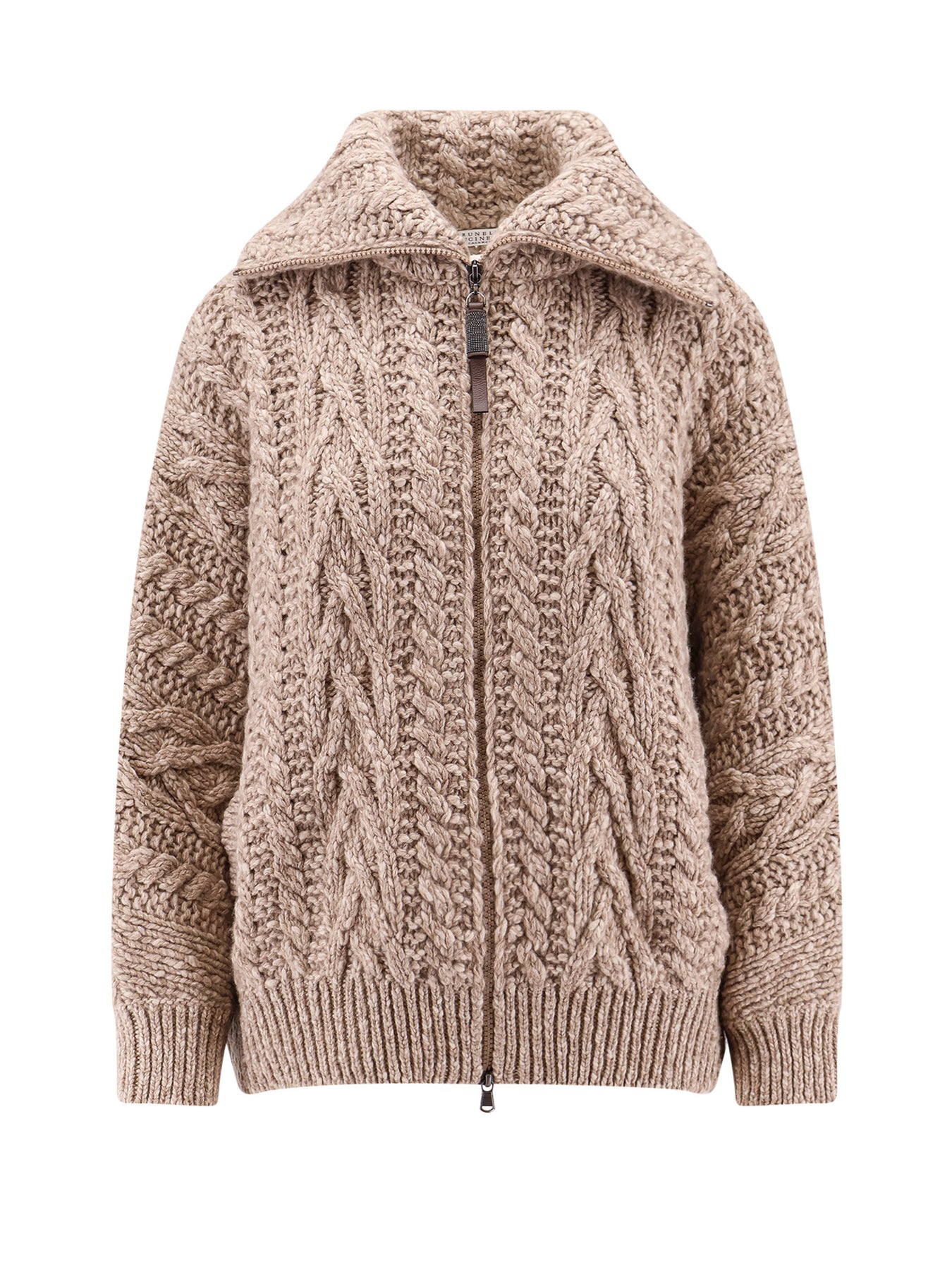 SKU: MGY354006_C4052 - Turtleneck closure with zip and leather slider front pockets made in italy 55% wool 45% cashmere