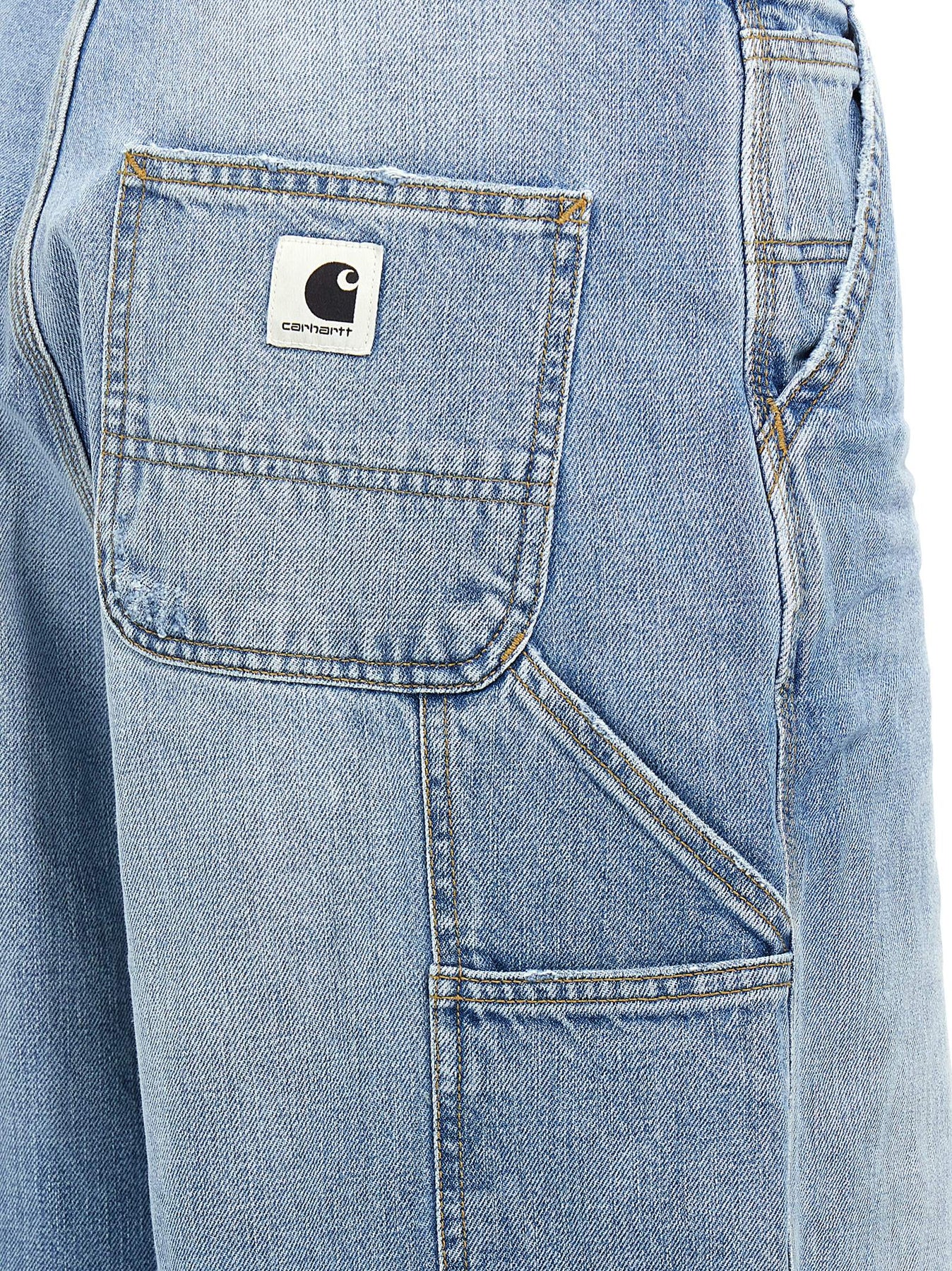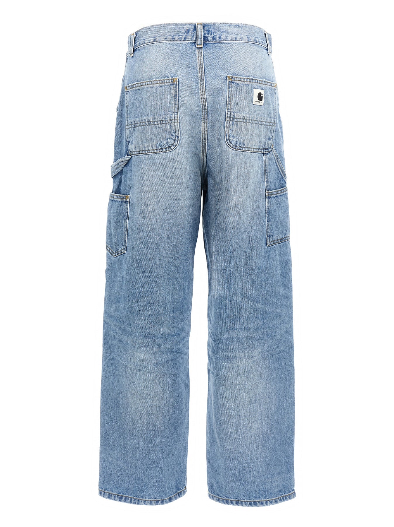 'Brandon single knee' wide-leg denim jeans with zip and button closure.