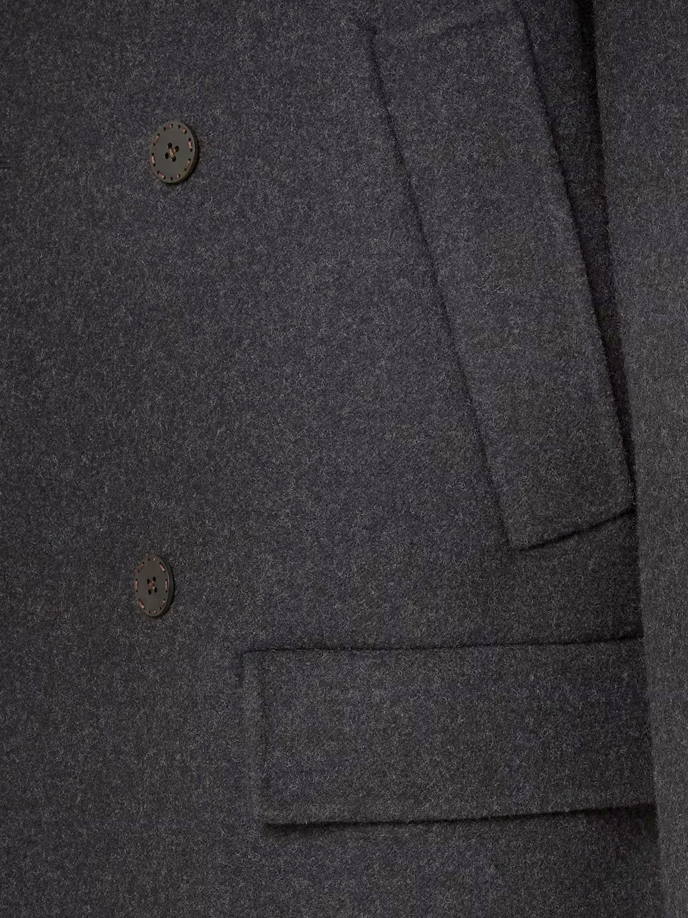 Double-breasted with buttons Two handwarmer pockets Two front flap pockets Wide lapel Made in Italy 100% virgin wool SKU: FW1415AOYAF0TY6