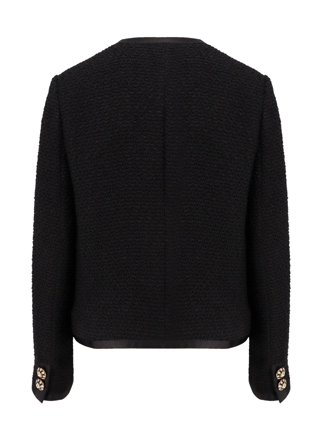 SKU: F27DAZFU3JL_N0000 - Hidden closure with snap buttons four front pockets with satin profile and jewel buttons crew-neck with satn profile made in italy 72% virgin wool 18% silk 8% polyamide 2% polyester