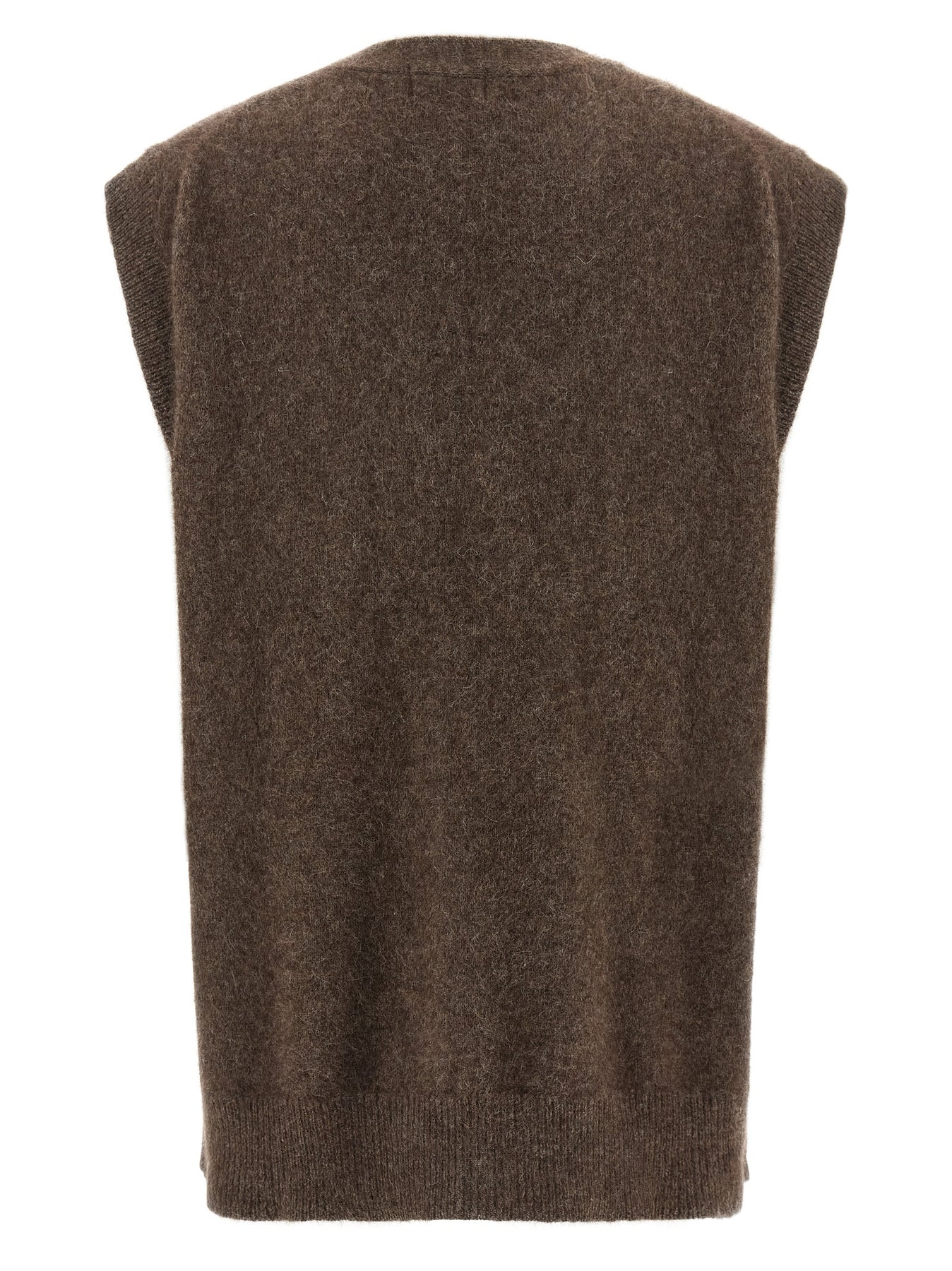 'Lacoon' raccoon wool vest, V-neck, front button closure, pockets.