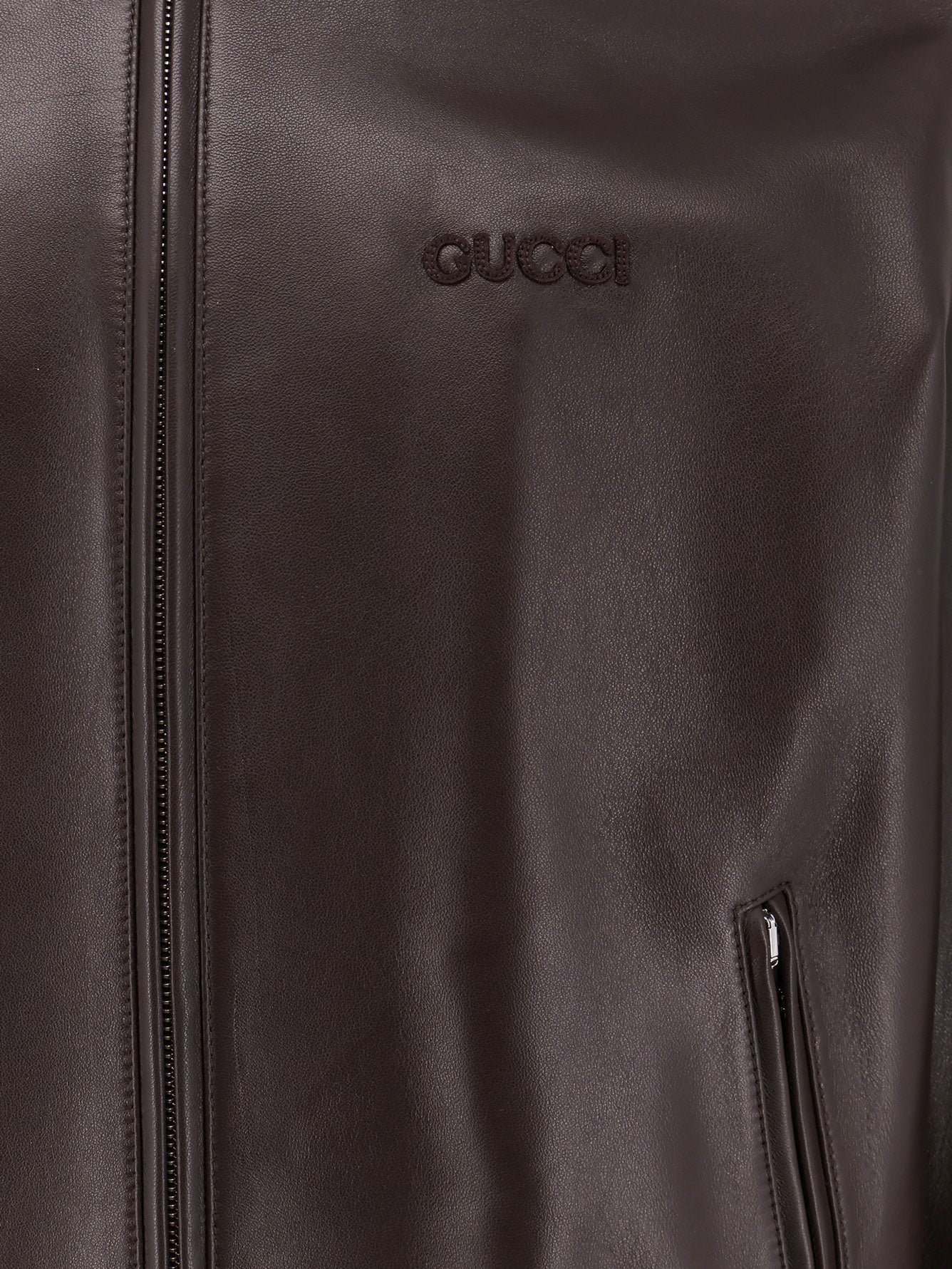 Closure with zip Ribbed wool cuffs with Web insert Two pockets with zip on the front Made in Italy 100% Leather Lining: 100% viscose SKU: 793726XNA3M_2014