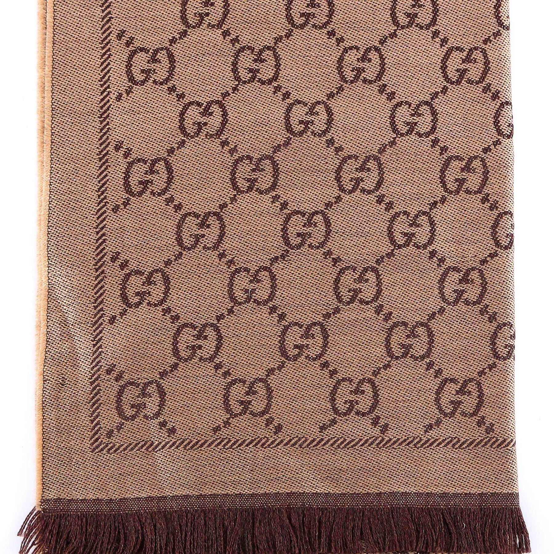 SKU: 1334833G200_2764 - All-over gg motif frayed profiles 48 x 180 made in italy 100% wool