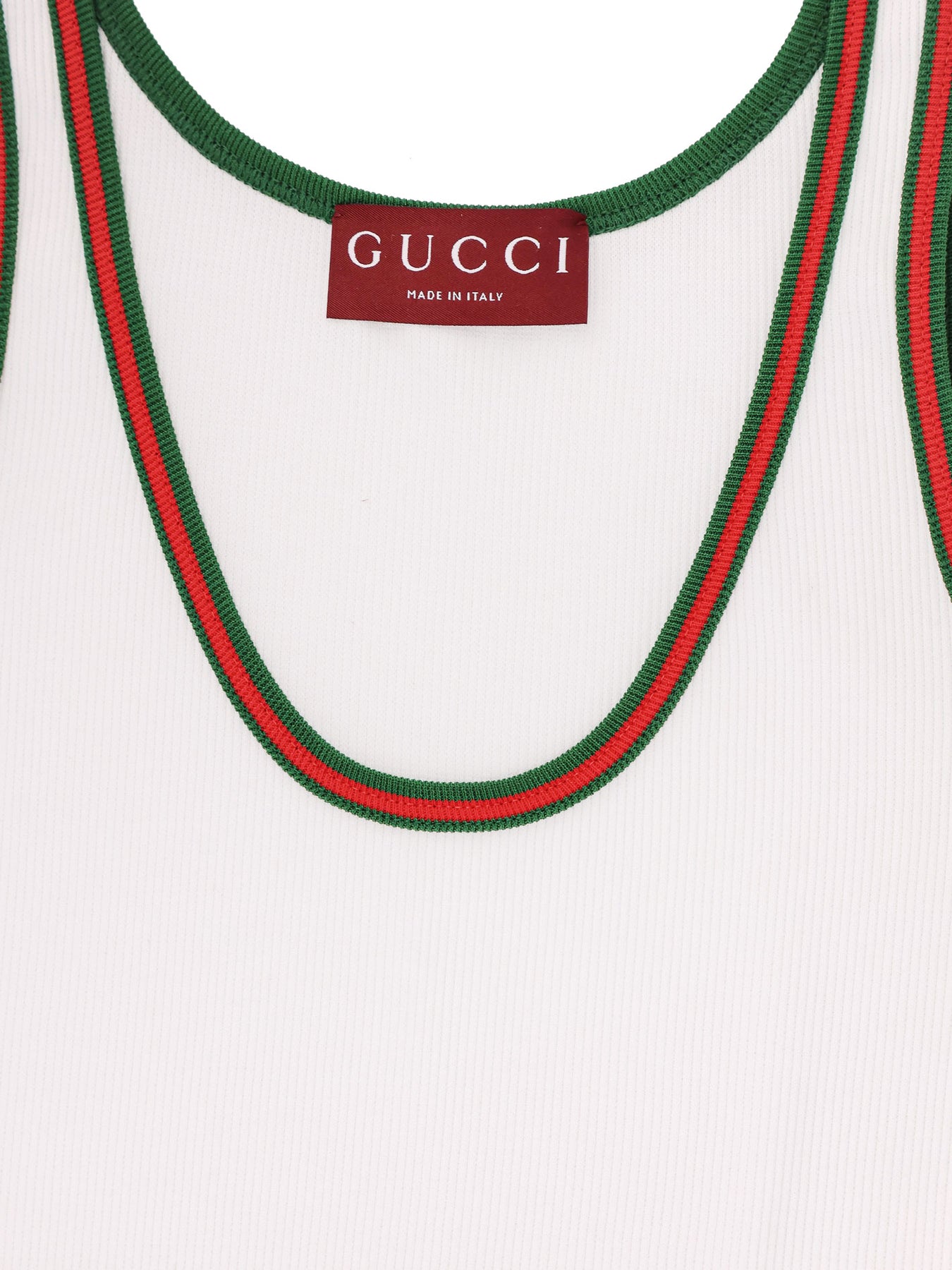SKU: 815851XJG5O_9692 - Rounded neckline with web profile sleeveless gucci embroidery on the back made in italy 100% cotton