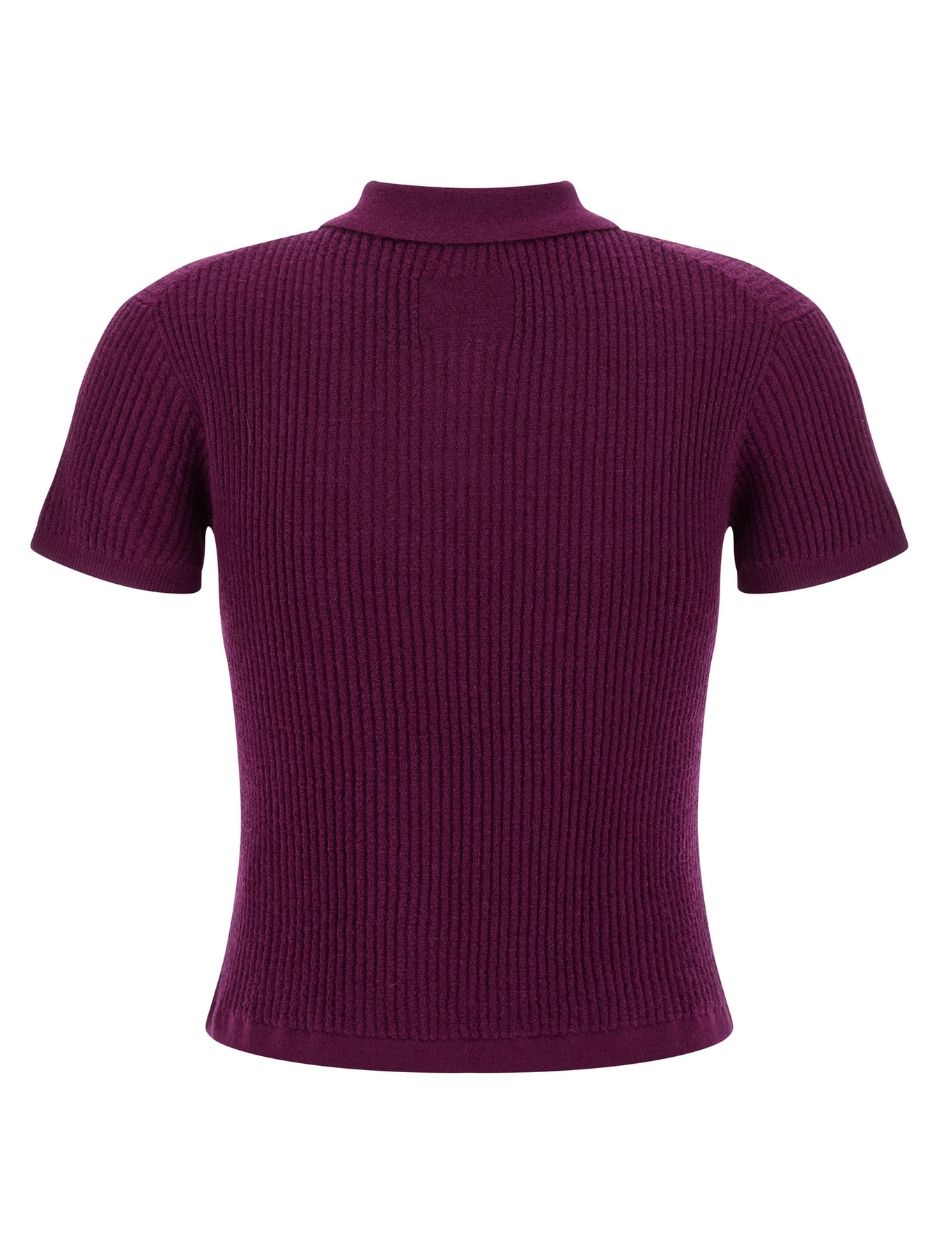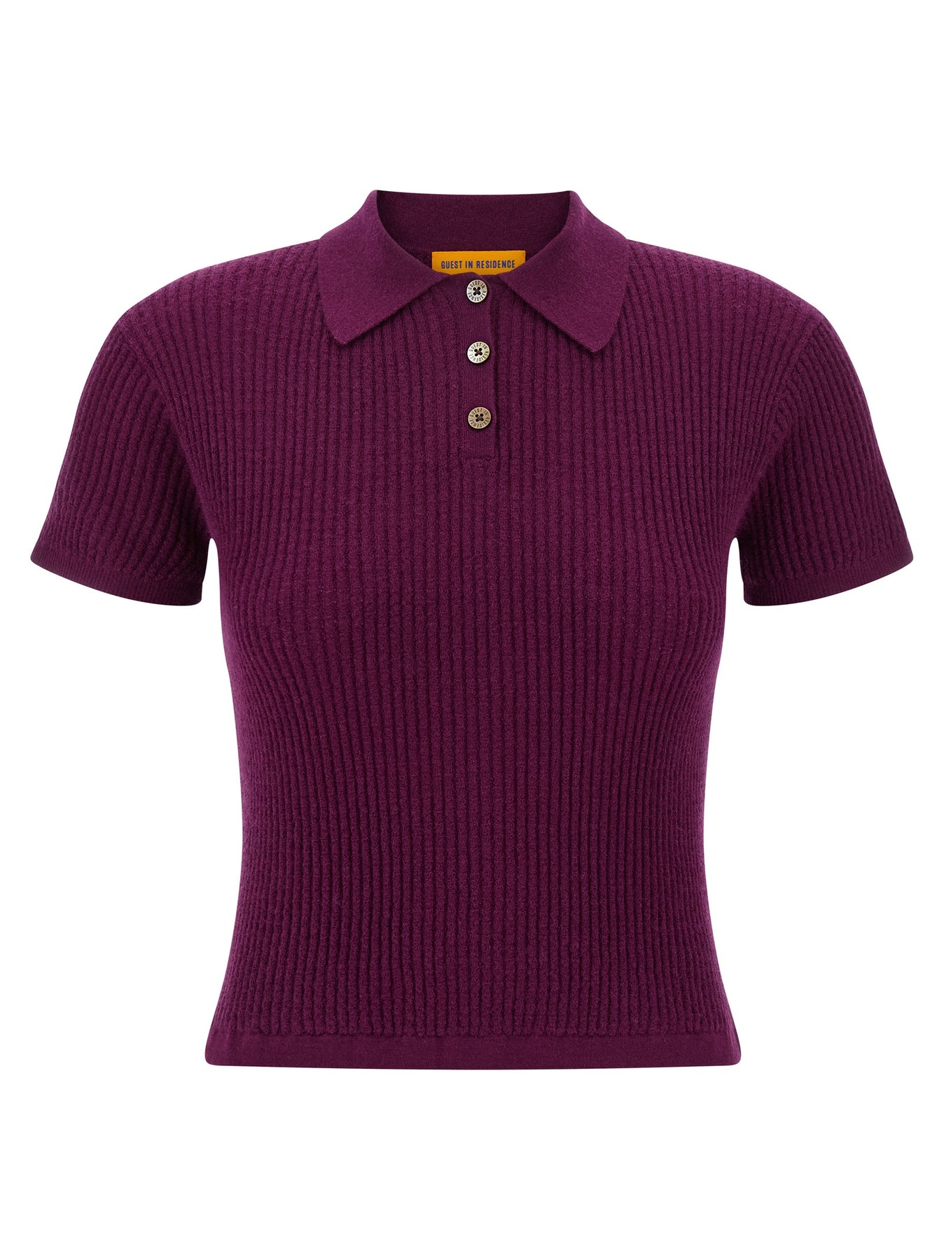 'Shrunken' extra light waffle cashmere polo shirt with collar and buttons, short sleeves.