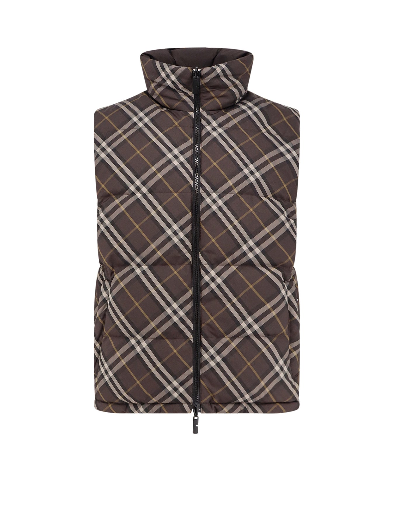 Zip closure with two-way slider Front zip pockets Adjustable drawstring bottom Rubberized logo patch Check print 100% polyester Filling: polyester fibers SKU: 8117100B2412