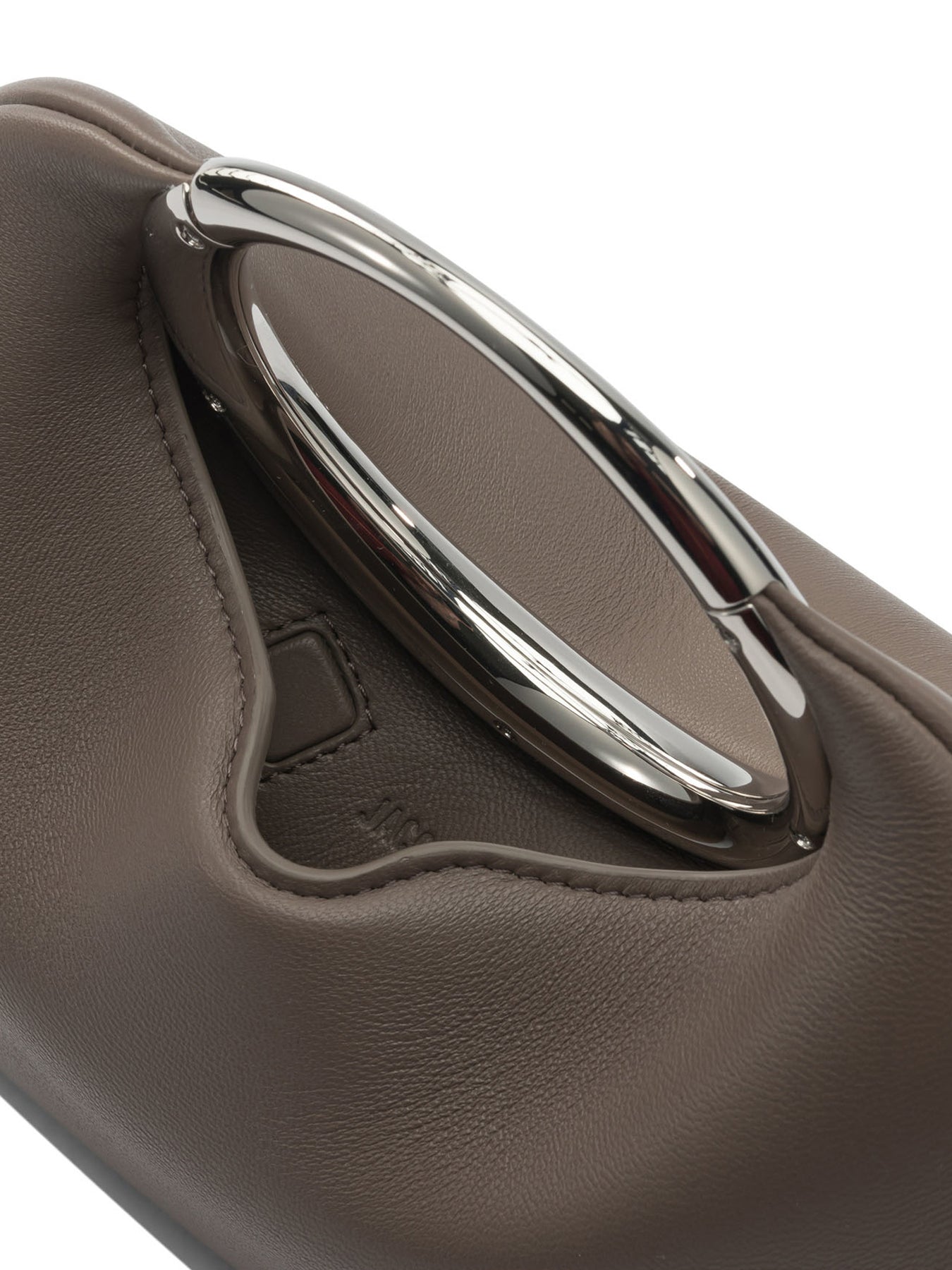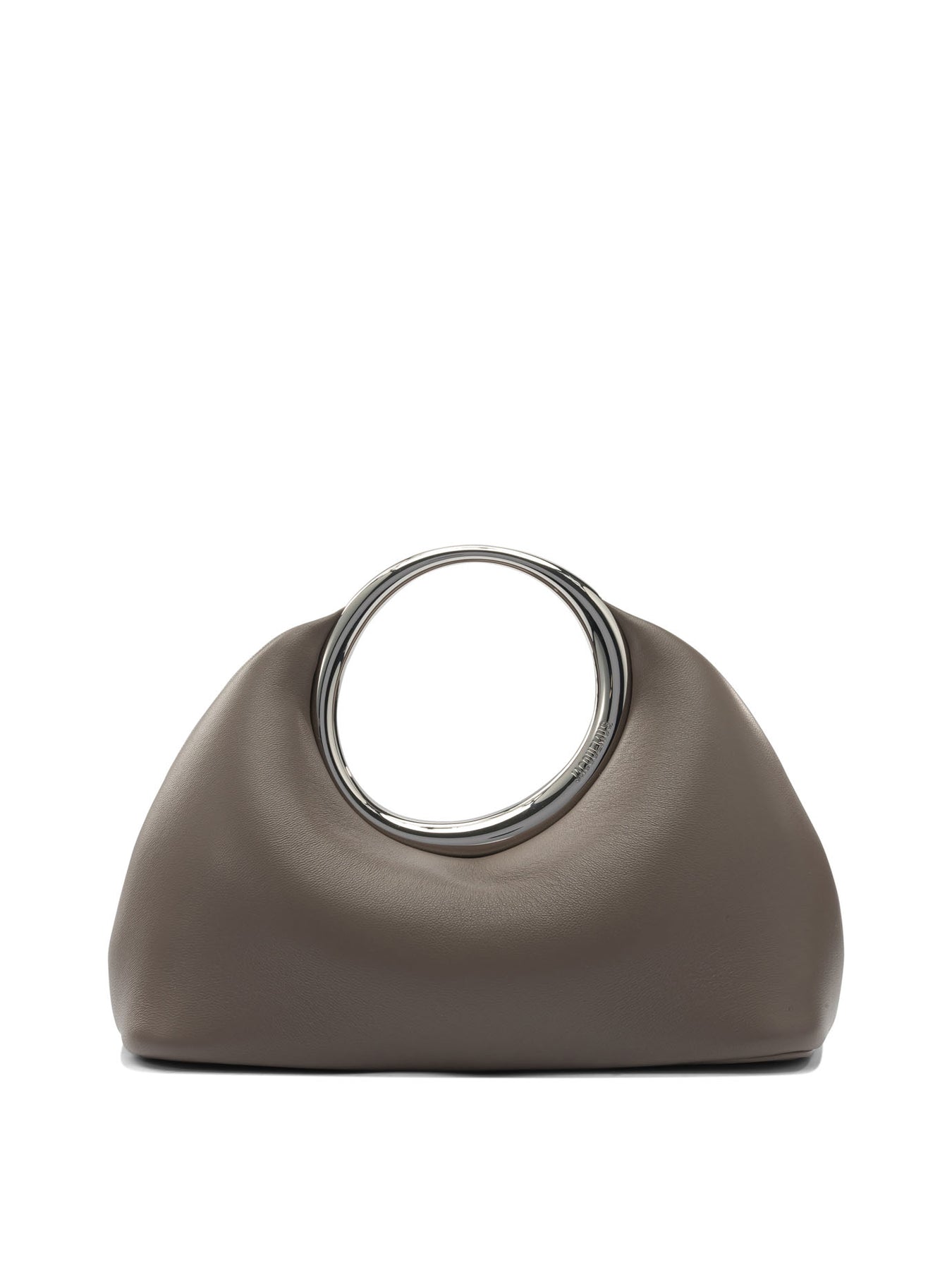 Jacquemus "Calino" clutch bag in nappa leather, with a compact profile and organic shape. The ring handle integrated into the structure is engraved and acts as a carrying element, allowing for a precise grip. The flat base provides stable support, while the magnetic closure offers quick and easy opening. The cotton-lined interior protects the contents and finishes the overall construction. || - Made of smooth nappa leather - Engraved ring handle integrated into the structure - Magnetic closure - Flat base for structural hold - Mini model with cotton-lined interior