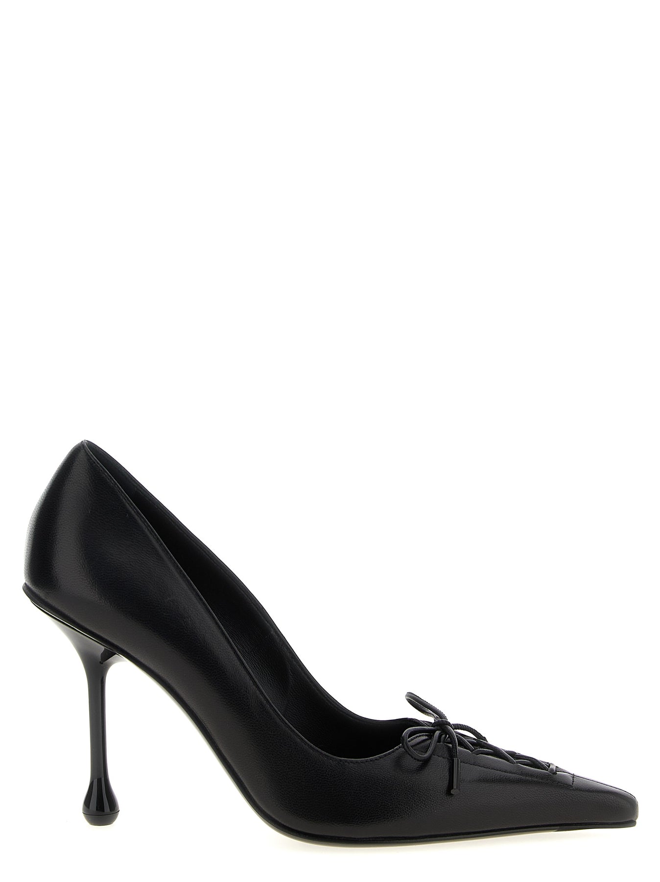 'Scarlett' nappa pointed pumps with corset upper with hand-strung leather lace and fixed with an invisible stitch, teardrop heel, leather sole.
