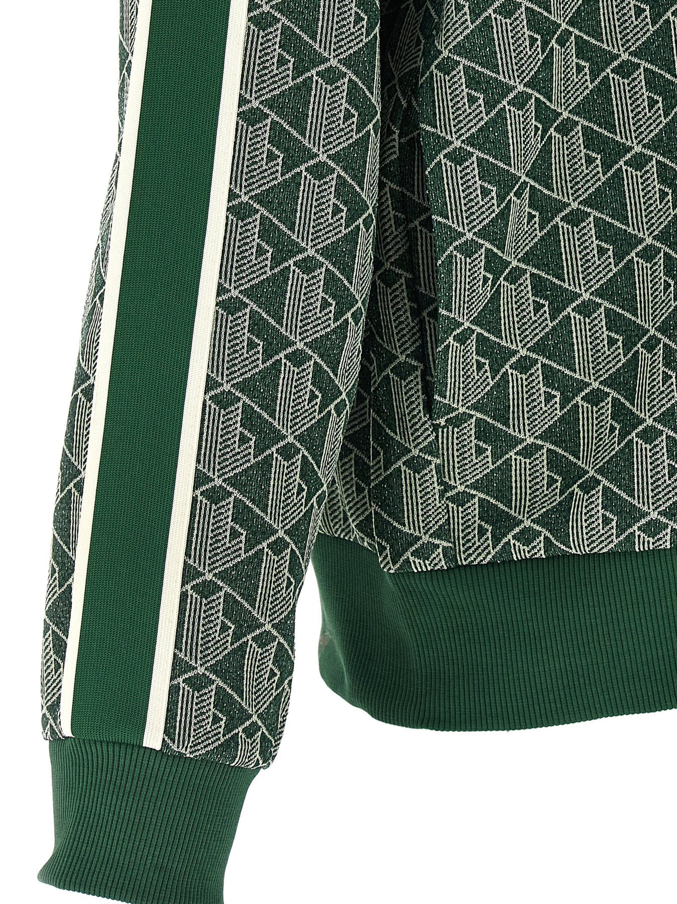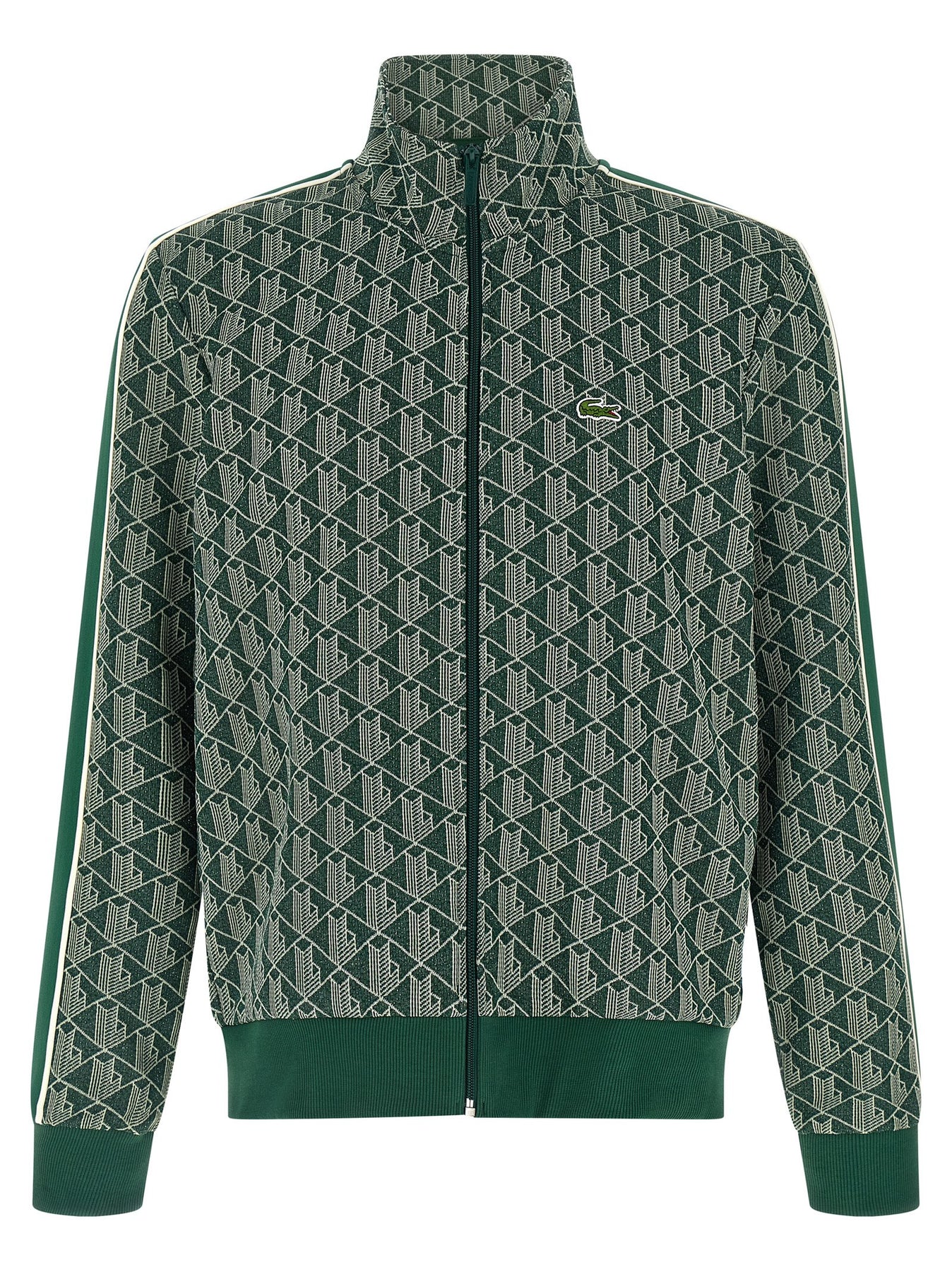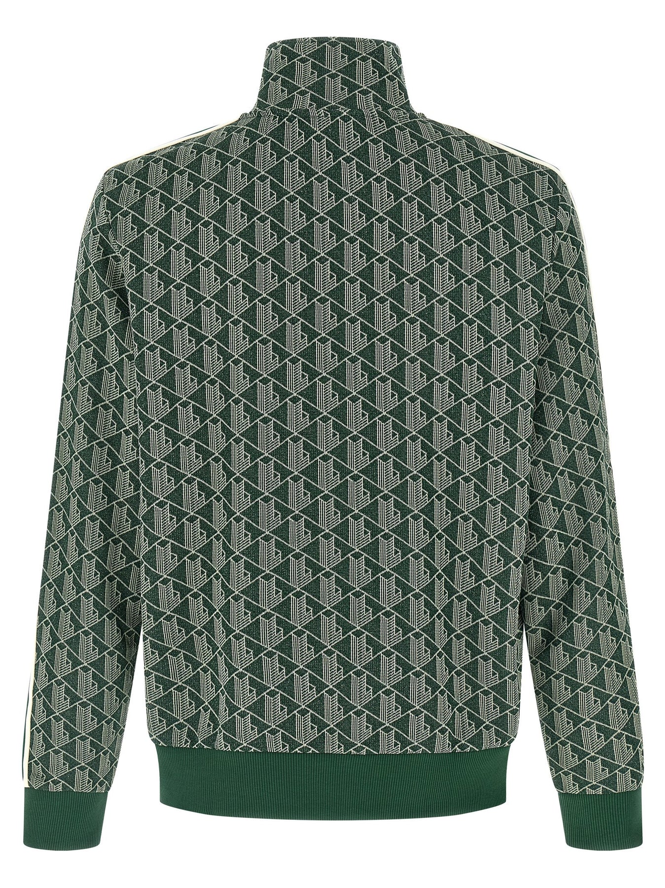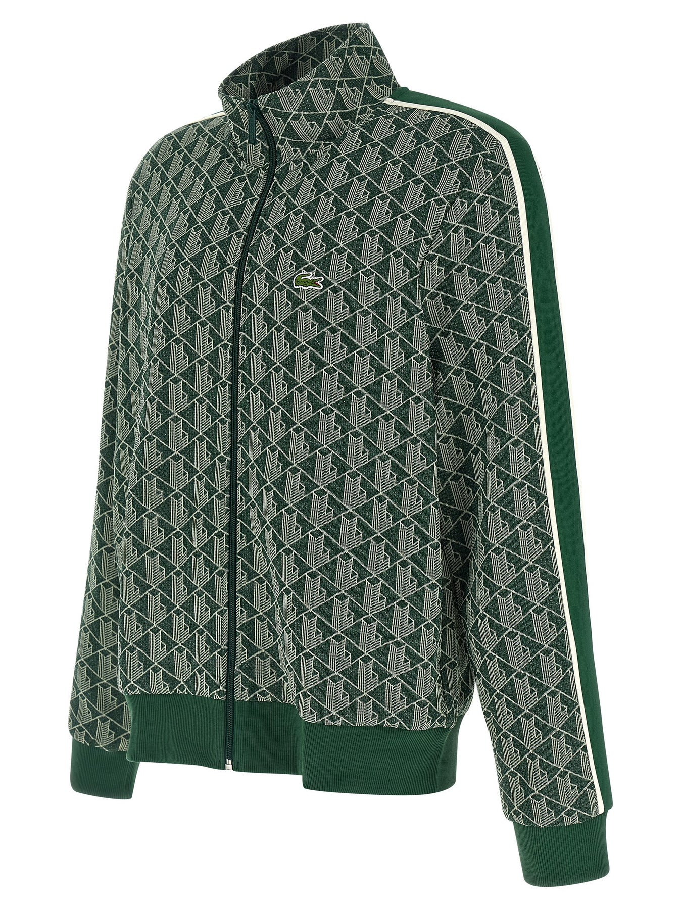 'Paris' vintage jacquard monogram cotton blend sweatshirt with grosgrain bands on the sleeves, high neck, logo patch and front zip closure, pockets, long cuffed sleeves.
