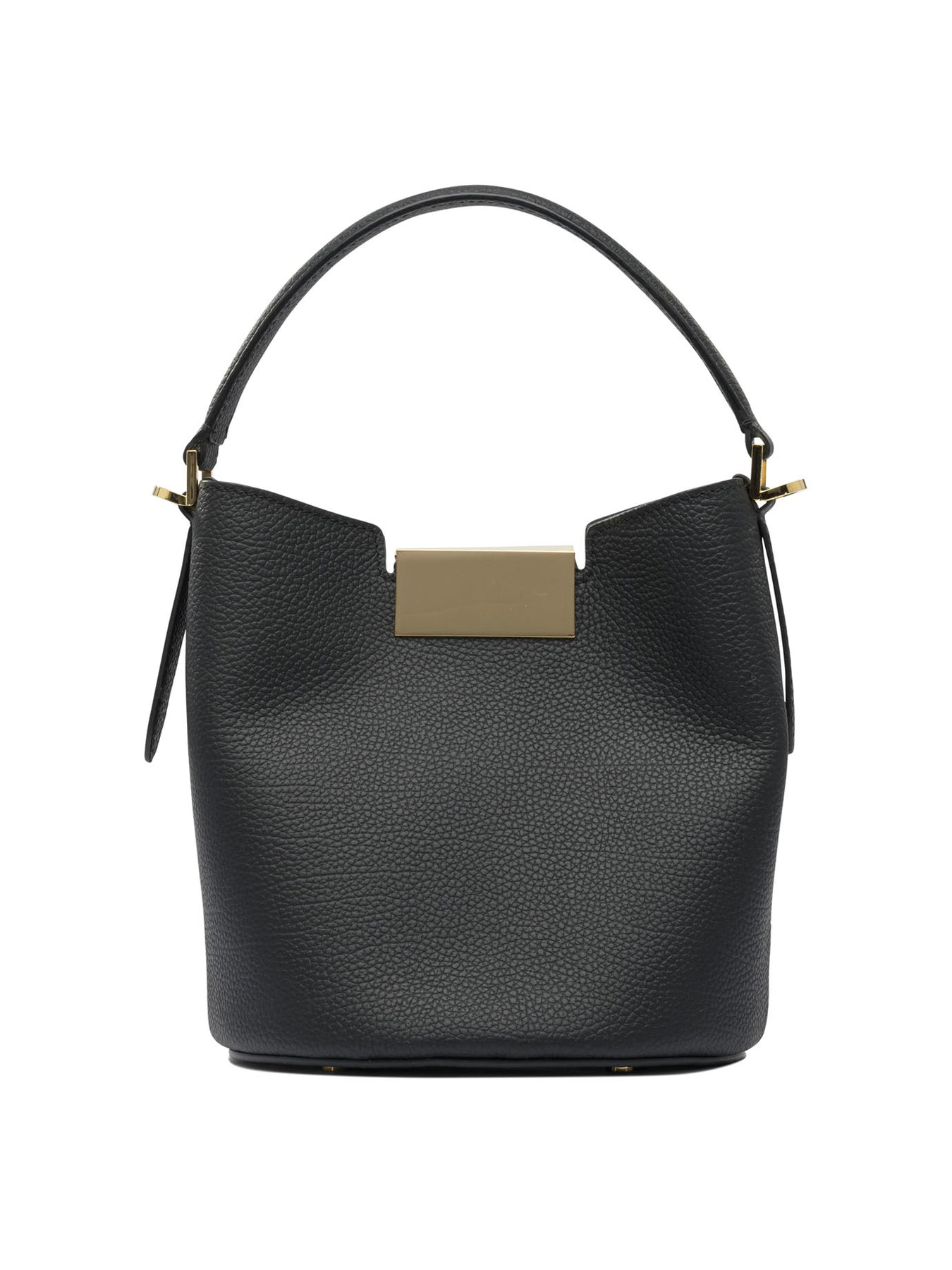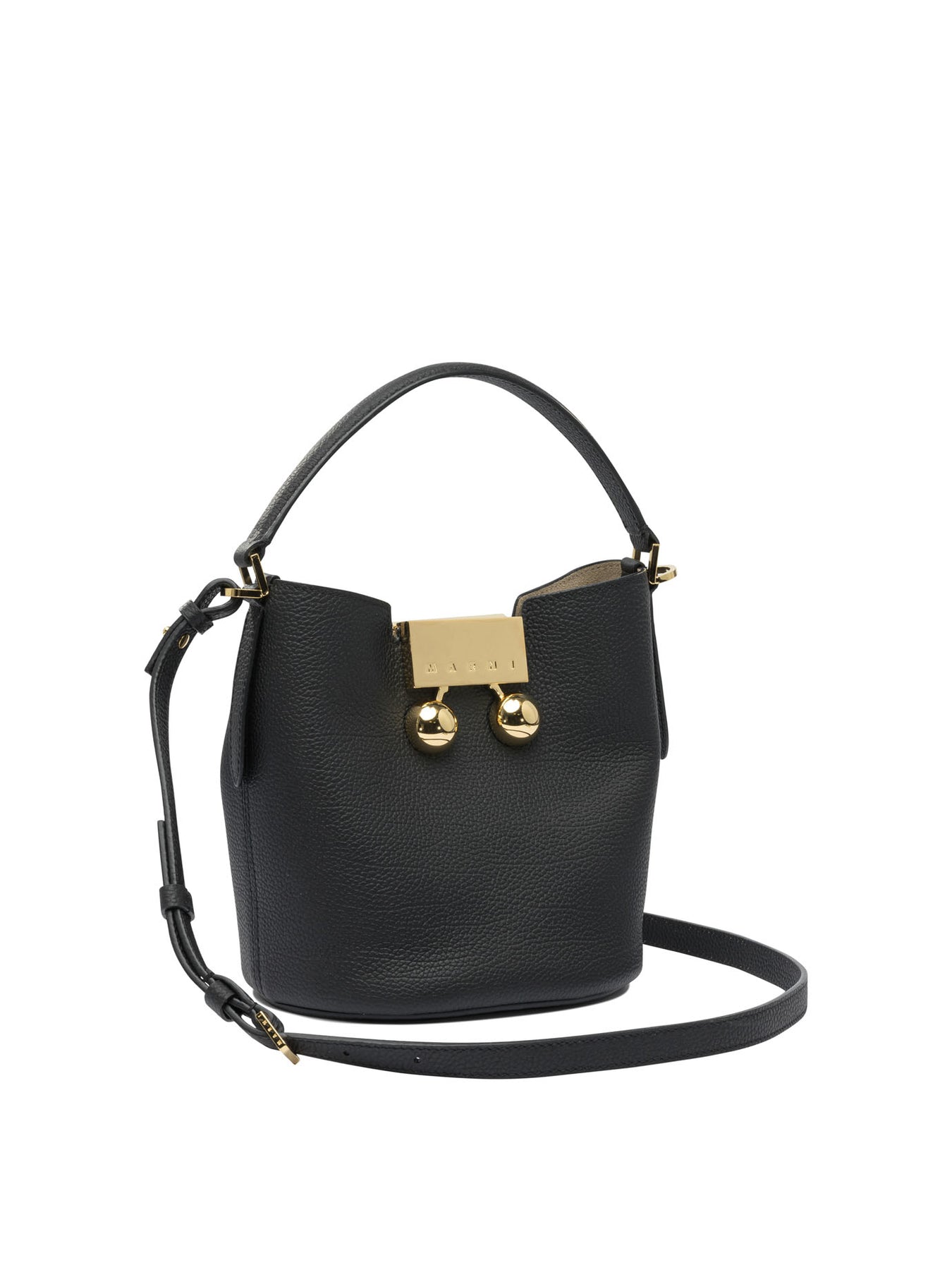 Marni "Trunkaroo" bucket bag made of natural-grain leather with soft, semi-rigid texture. The design features a maxi buckle inspired by the brand's iconic clasp, with Marni lettering embossed on the closure. Equipped with a top handle and an adjustable and removable shoulder strap, the bag allows for dual portability. The interior is finished with leather lining and interior patch pocket. || - Natural grain leather - Maxi press stud buckle with Marni lettering - Top handle - Adjustable and removable shoulder strap - Leather lining - Interior patch pocket