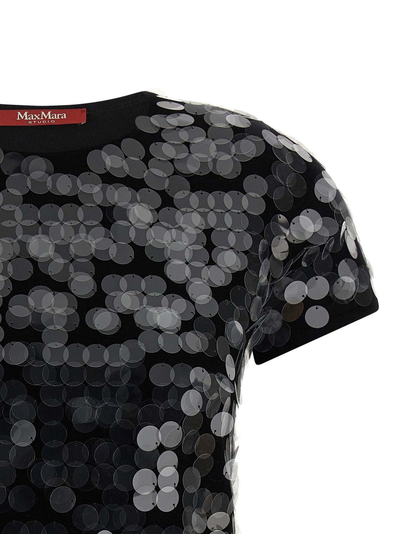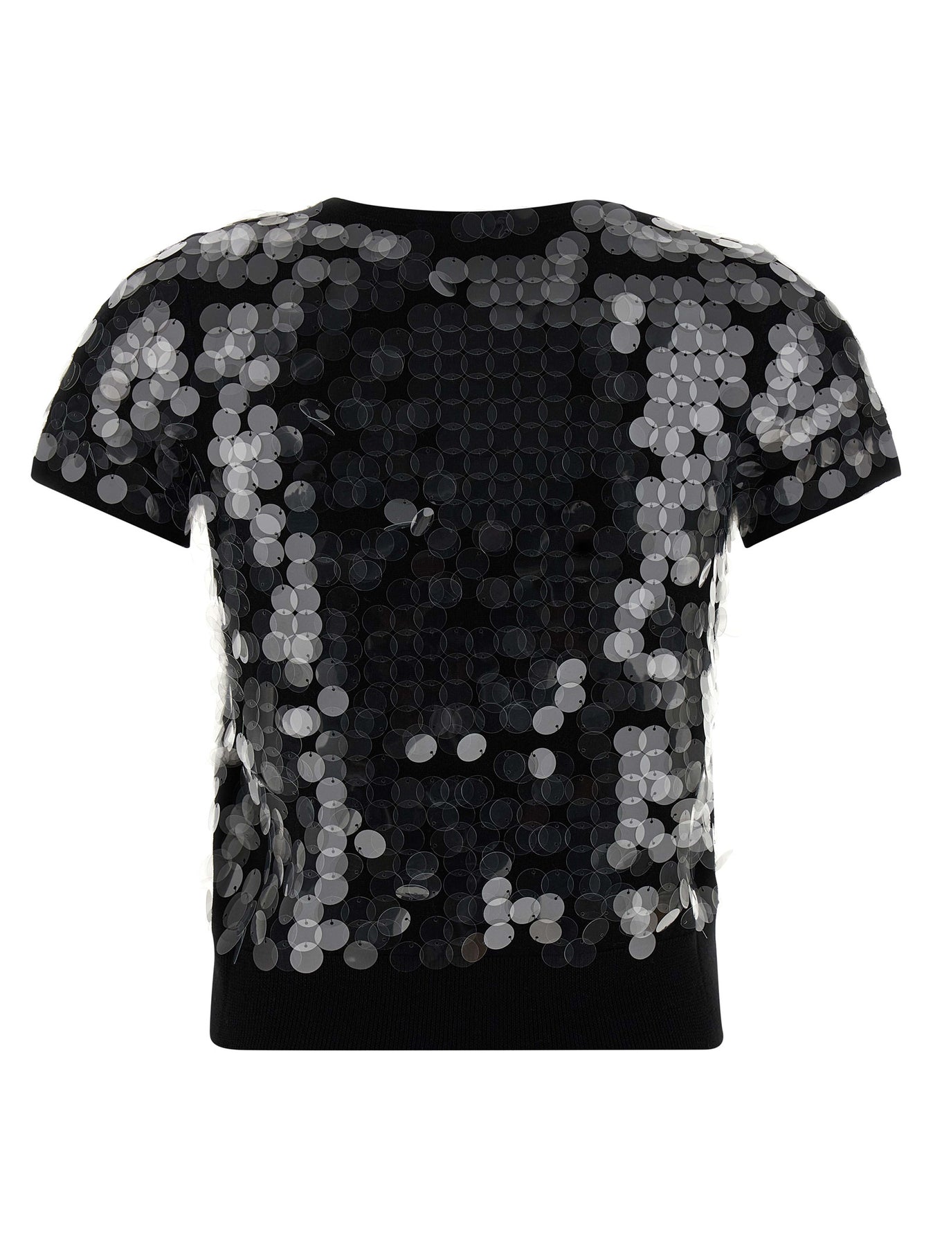 'Saio' wool sweater, crew neck, all-over macro sequins, short sleeves.