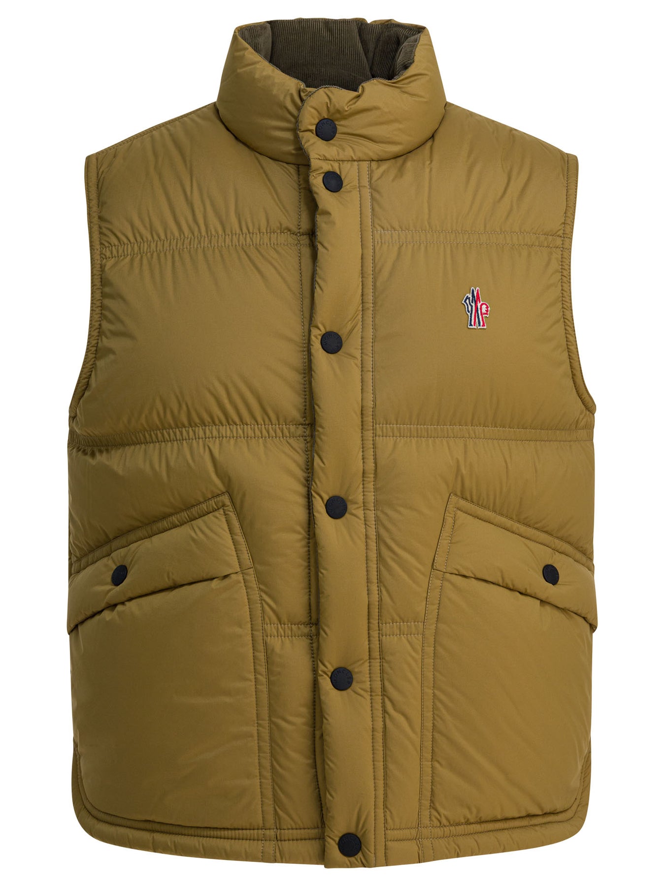 Moncler Grenoble "Aul" sleeveless jacket, made of durable nylon with down-filled structure. The silhouette is sleeveless, with a snap-button front closure. The collar and back feature a corduroy lining, while the interior is lined entirely in Polartec® High Loft™ velour fleece. The fabric provides insulation and lightness, while maintaining a quick-drying surface and soft feel. || - Applied logo - Sleeveless - Down-filled construction - Polartec® High Loft™ velvet fleece inner lining - Front snap button closure - Front snap button pockets - Regular fit