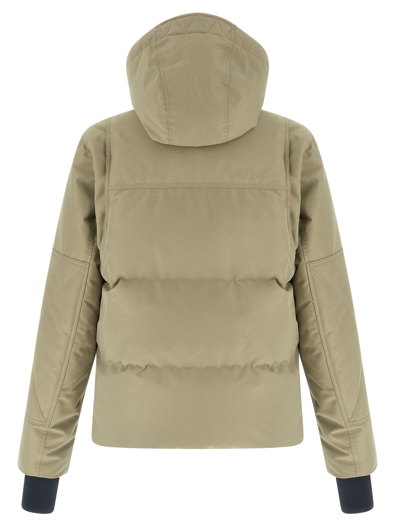 'Elfin' ski jacket in water-repellent quilted tech fabric with goose down padding, adjustable and removable hood, high neck with tone-on-tone corduroy lining, YKK® AquaGuard® Highly Water-Resistant zip closure and front snap buttons, pockets, long sleeves with windproof cuffs and logo patch appliqué, drawstring hem and inner gaiter.